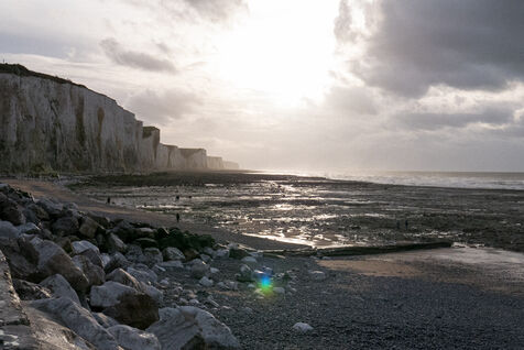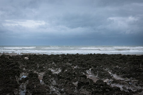 France, Ault, 18/10/2020. Marine, mineral and aquatic illustration, on a windy day, from the beach of Ault in the Somme.
