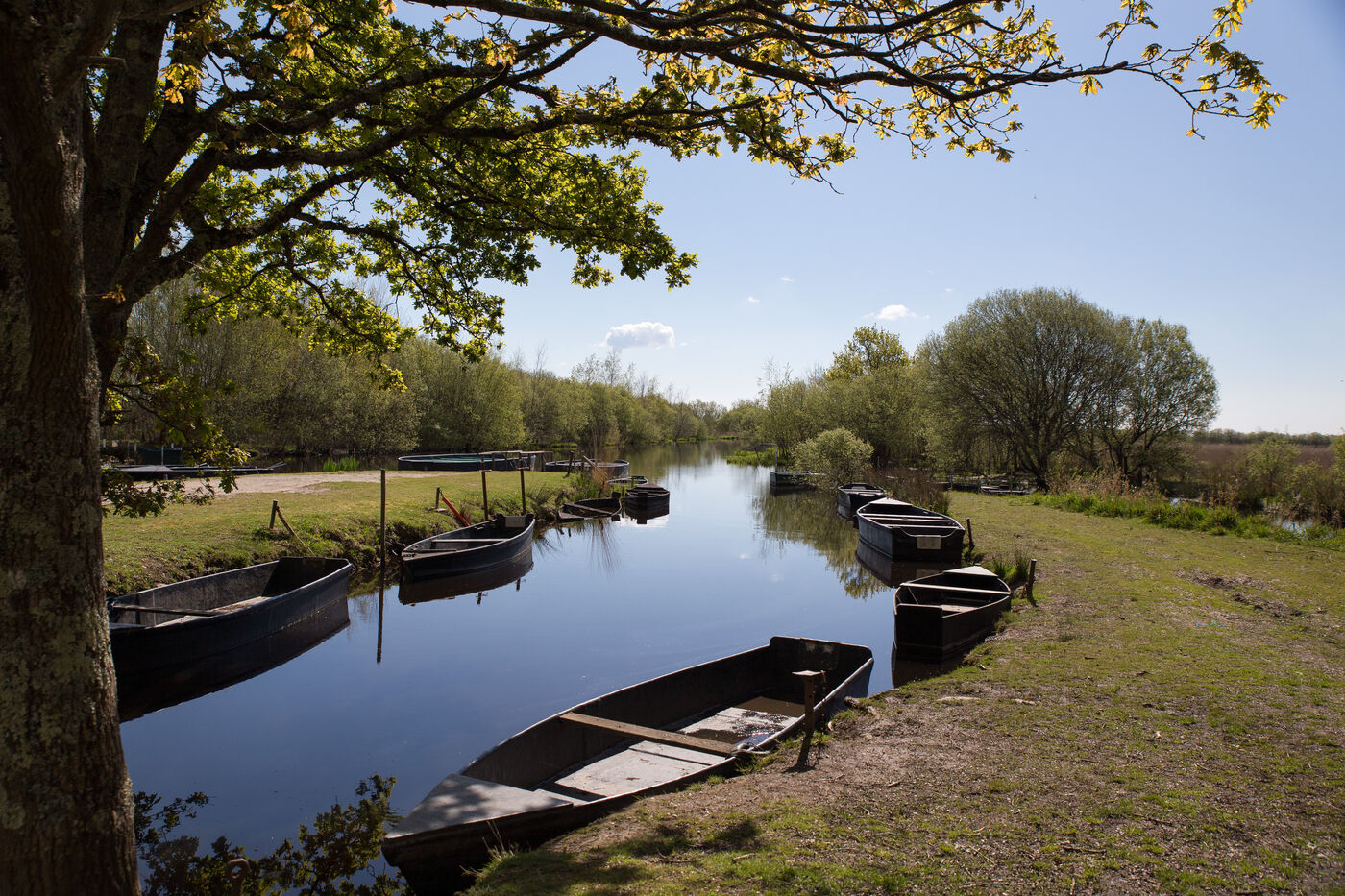 France, Loire-Atlantique, Port de Bréca in Saint-Lyphard, gateway to the Brière marshes. 18/04/2016. The Brière marshes regional nature reserve is a mosaic of canals (les curées), shallow lakes (les piardes and les copis), reedbeds, flood meadows and hillocks. The avifauna and flora are rich and varied, and most species of freshwater fish can be found here. It is the second largest marsh in France (70 km²) after the Camargue. Another special feature is the special legal status of the Grande Brière Mottière marsh. It is the undivided property of the inhabitants of the 21 riverside communes. This ownership was proclaimed in 1461 by Letters Patent from François II, Duke of Brittany, and even today, the Briérons continue to manage their marsh themselves.