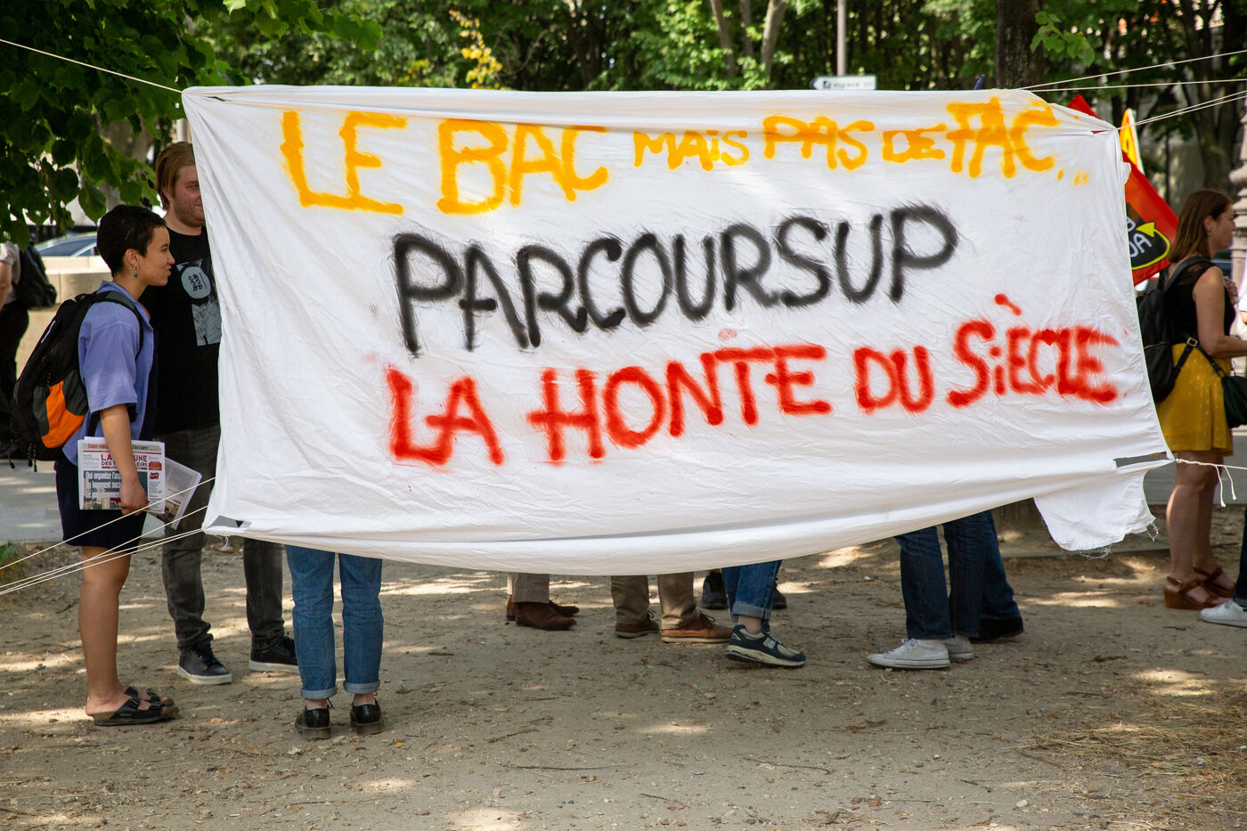 France, Paris, le Vendredi 9 juin 2023. Rassemblement a l appel du Mouvement des Mères isolées, de la FIDL, la CGT Educ?action, la FCPE Union Locale Paul Valery. Les participant demandent l?abrogation de ParcourSup, de la réforme du Bac, la suppression de la plateforme MonMaster et d?avantage de moyens pour l?enseignement supérieur et les étudiants.