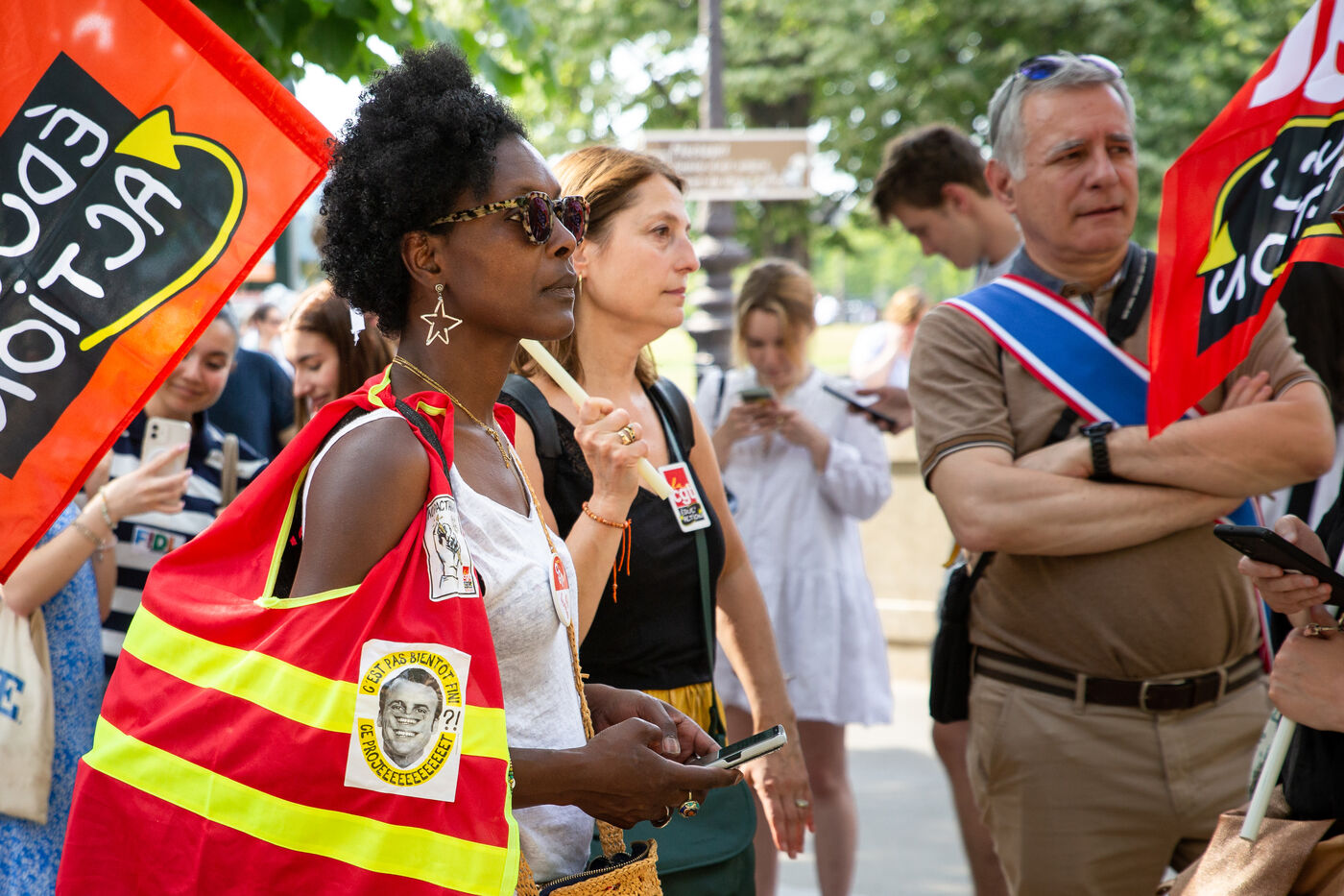 France, Paris, Friday June 9, 2023. Rally called by Mouvement des Mères isolées, FIDL, CGT Educ'action, FCPE Union Locale Paul Valery. Participants demanded the repeal of ParcourSup, the Bac reform, the abolition of the MonMaster platform and more resources for higher education and students.