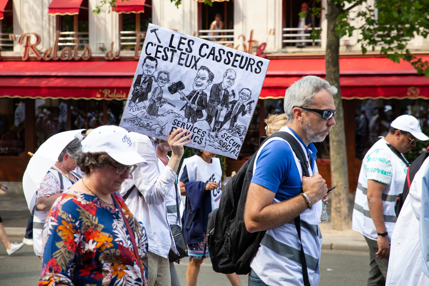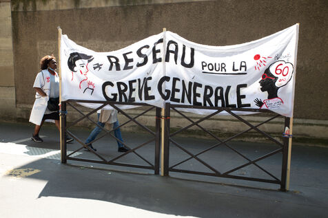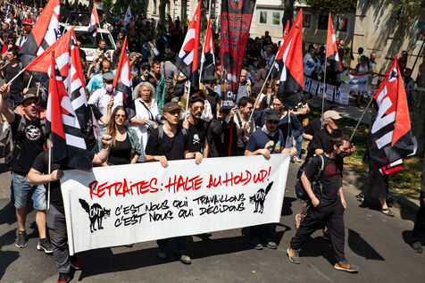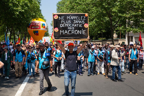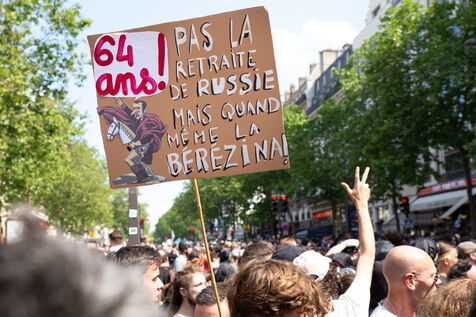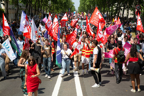 France, Paris, June 6, 2023. Paris demonstration against pension reform. Fourteenth day of inter-union mobilization against the pension reform proposed by Elizabeth Borne and her government. Demonstrators protest against the postponement of the legal retirement age to 64 and the acceleration of the increase in the contribution period.
