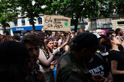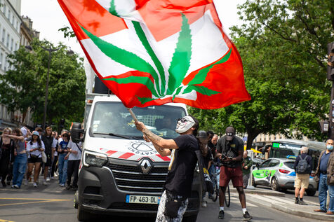 France, Paris, May 27, 2023. Cannaparade 2023. Supporters of drug law reform marched from Place de la République to Place de la Bastille, demanding alternatives to prohibition in order to liberate cannabis. They demanded: decriminalization of use, a national public debate, authorization for therapeutic cannabis, prevention without stigmatization, the possibility of self-production and Cannabis Social Clubs.