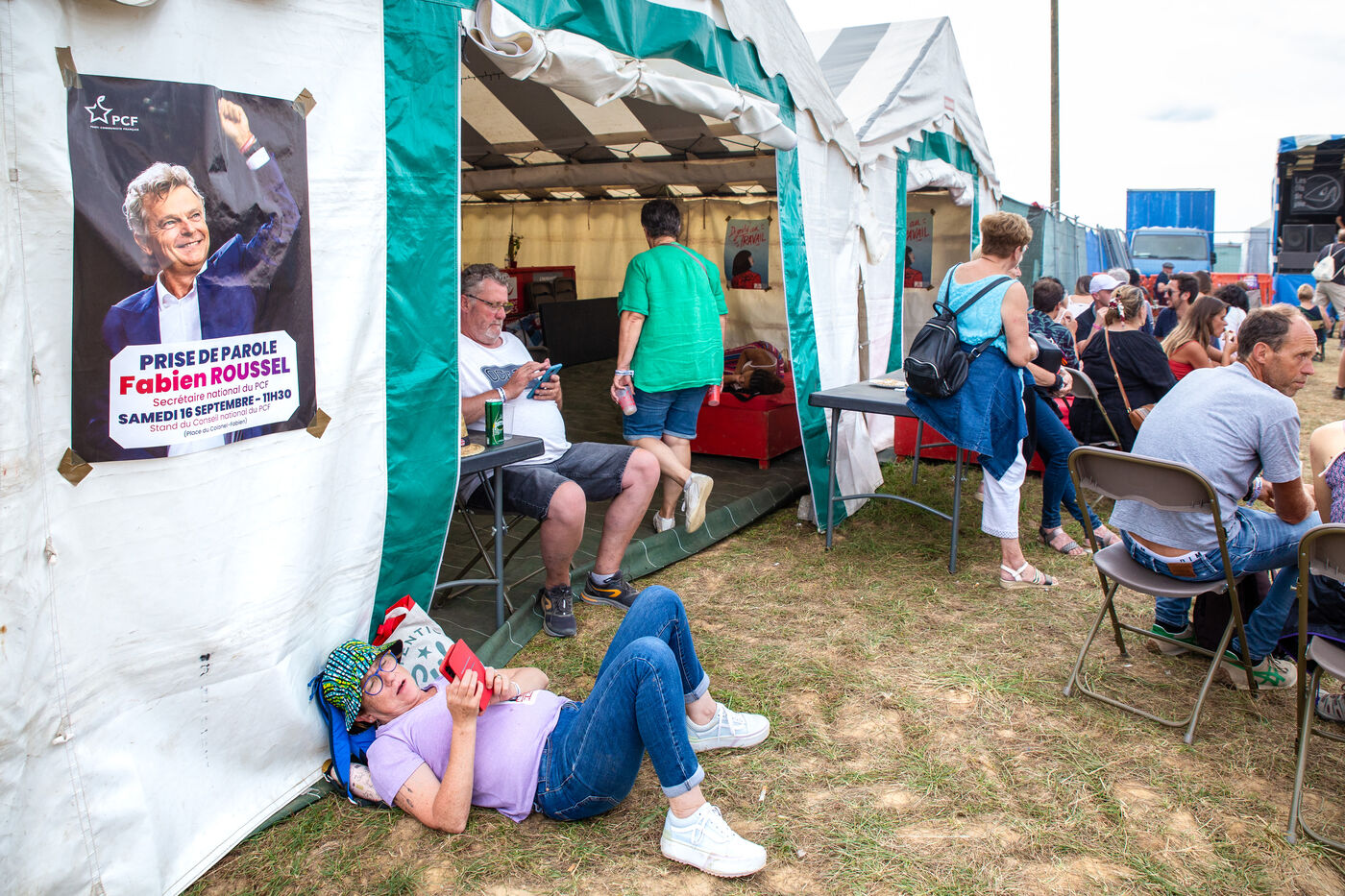 France, Bretigny-sur-Orge, Le Plessis-Pate, le 16 septembre 2023. La fete de l Humanite. Ambiance, illustrations.