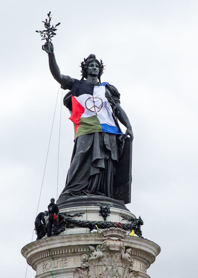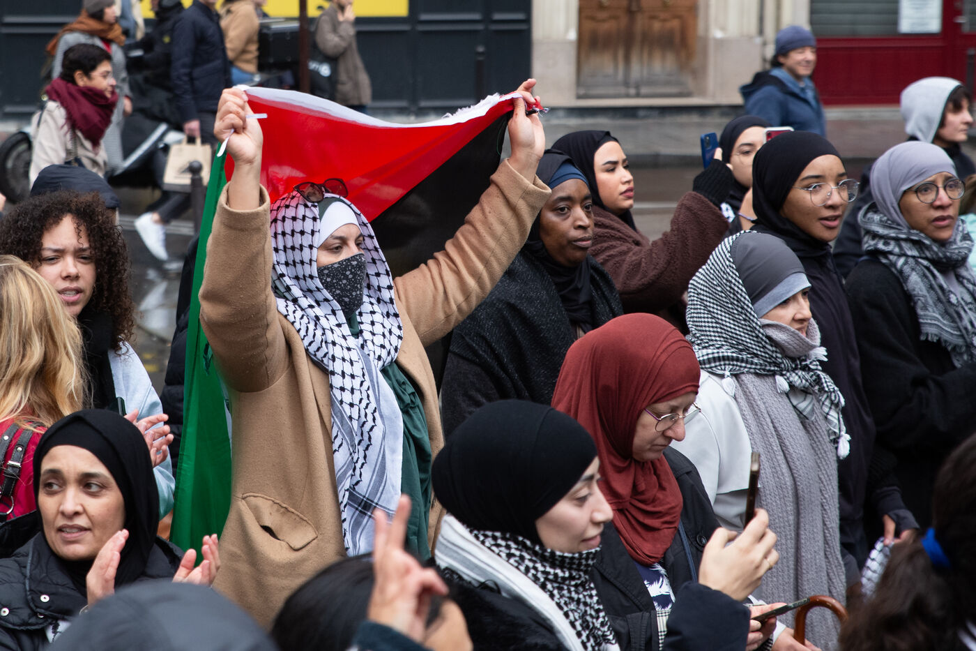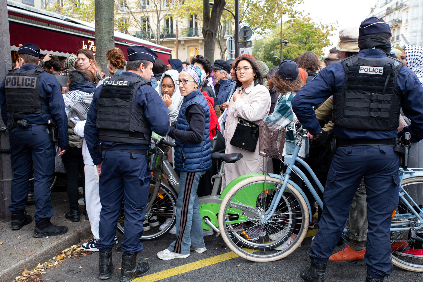France, Paris, October 28, 2023. Gathering in support of the Palestinian people, forbidden by the Prefecture de Paris in the context of an emergency attack alert in France. The demonstrators, who had come to demand an end to Israel's military intervention and bombardment of Gaza, were quickly caught in a trap.
