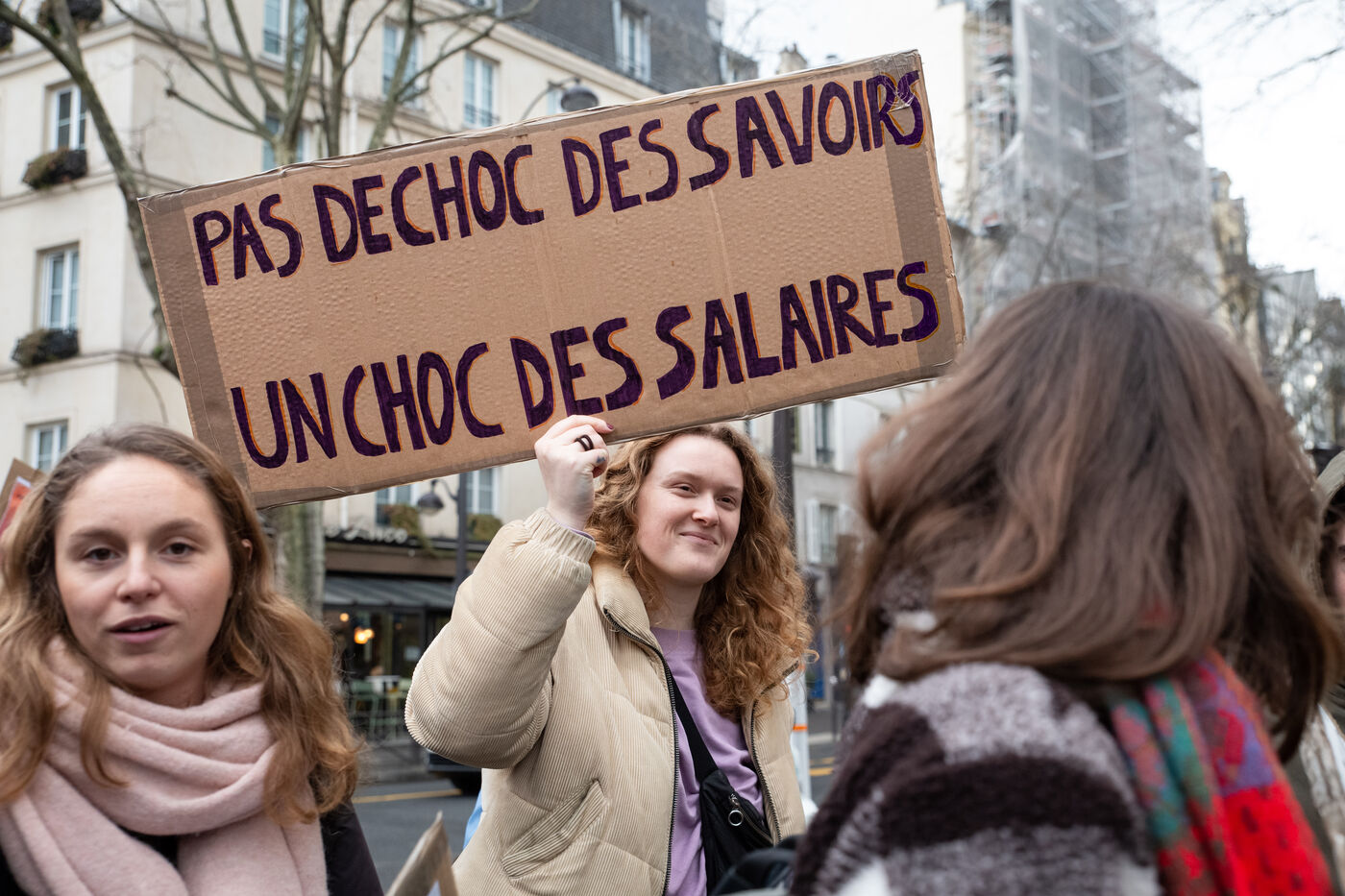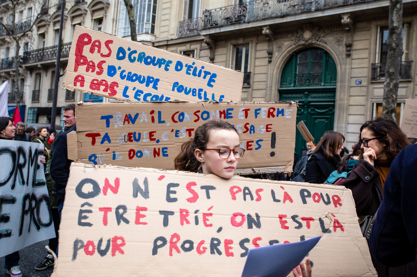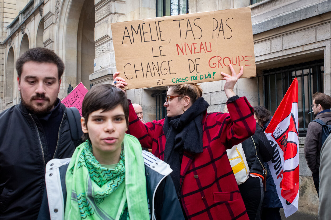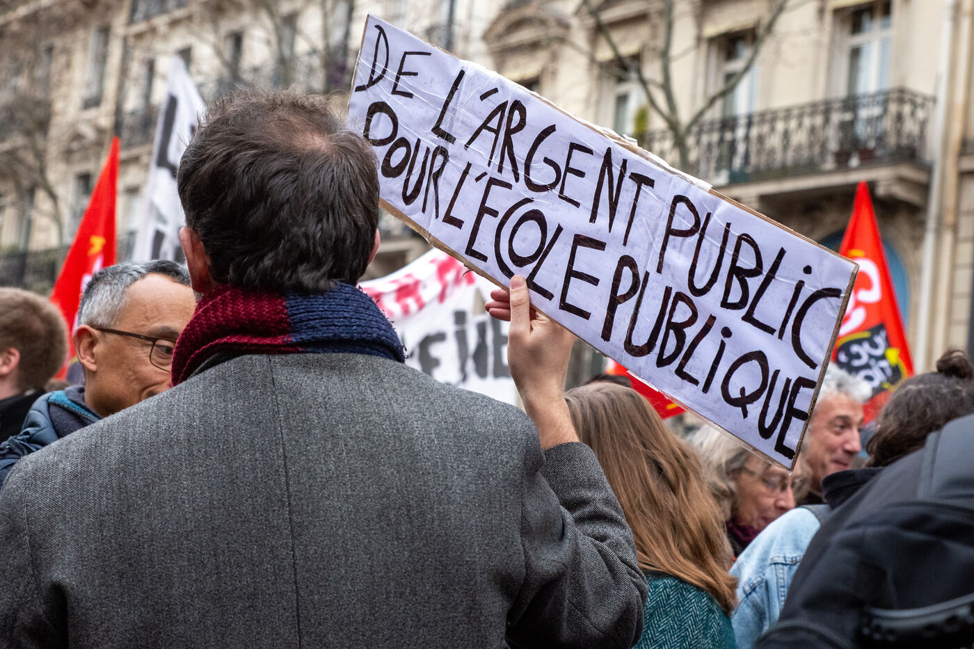 France, Paris, le 1ier fevrier 2024. Manifestation des enseignants, professeurs de l ecole publique et personnels de l Education nationale contre la politique du gouvernement et contre la ministre de l education nationale Amelie Oudea-Castera.