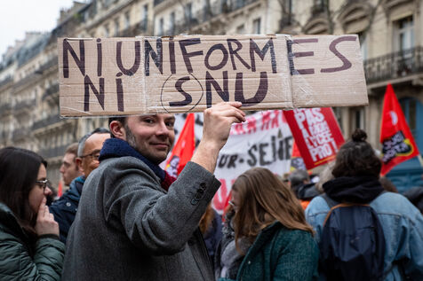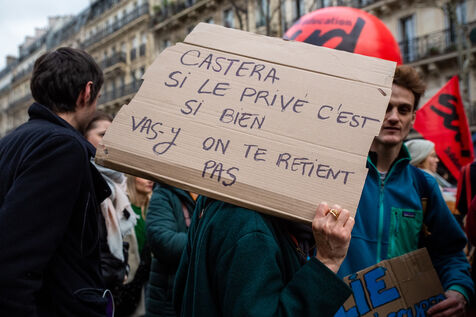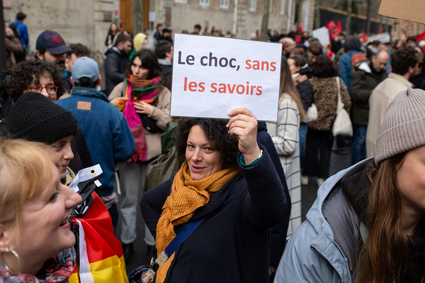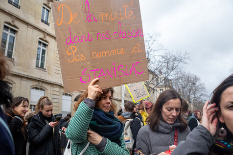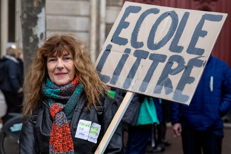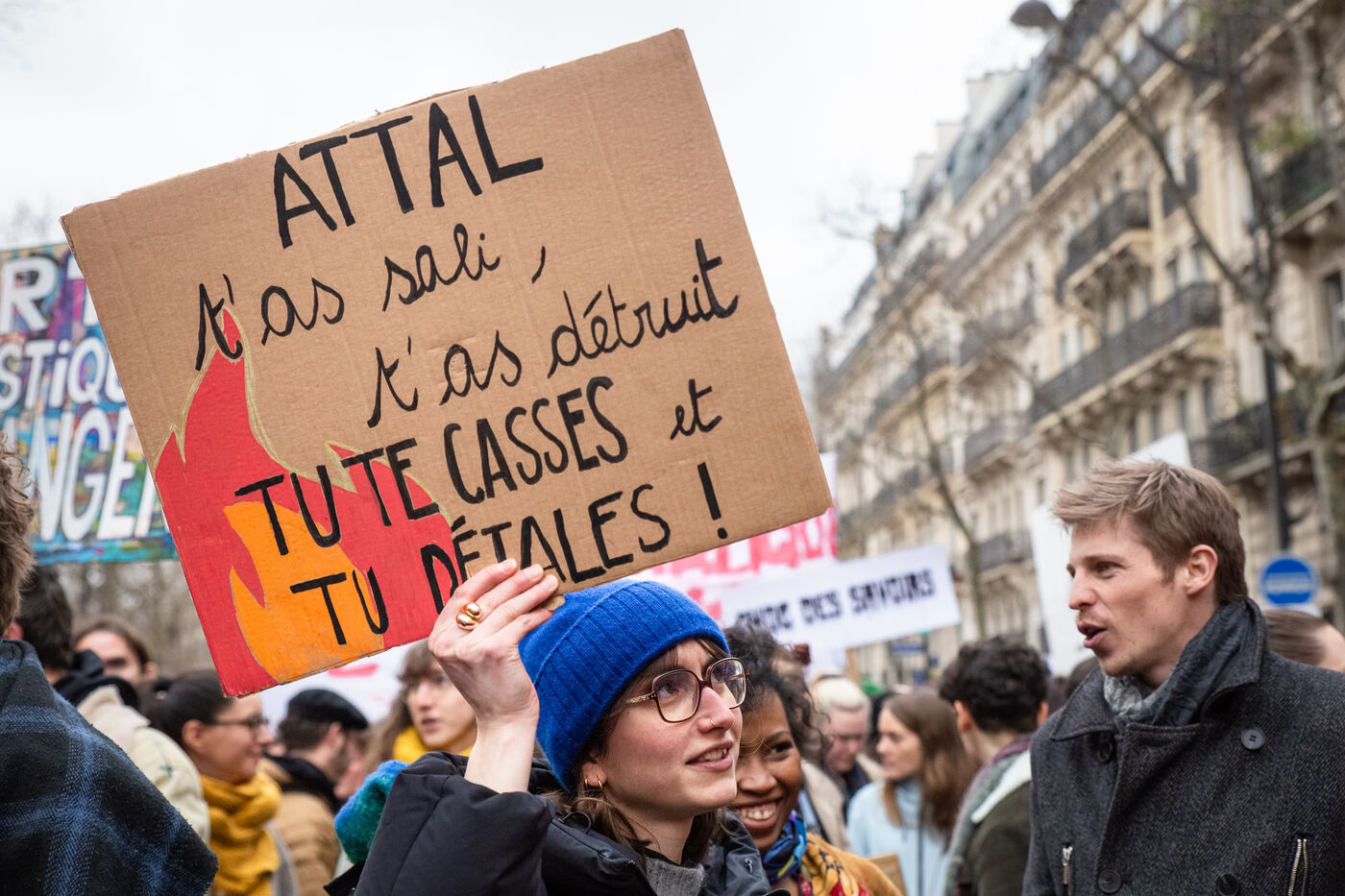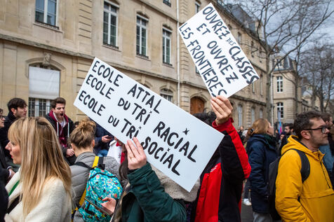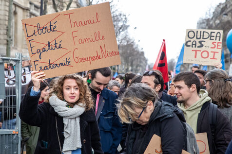 France, Paris, 1st February 2024. Demonstration by teachers, state schoolteachers and national education staff against the government's policies and the Minister of National Education, Amelie Oudea-Castera.