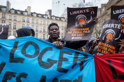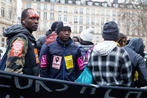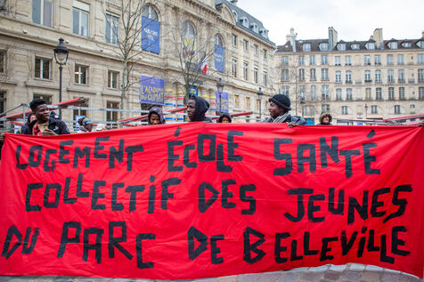 France, Paris, place Baudoyer, 6 February 2024. Organised by the Collectif des Jeunes du Parc de Belleville, with the support of 20eme Solidaire avec tou-te-s les migrant-e-s and SUD Education Paris. Key words: Housing! Schools! Health! Documents! The young unaccompanied foreign minors (MENA), who have been fighting for several weeks, are demanding a meeting with a delegation from Paris City Hall to assert their right to shelter.
