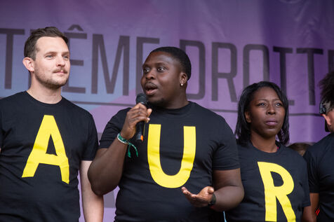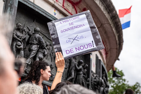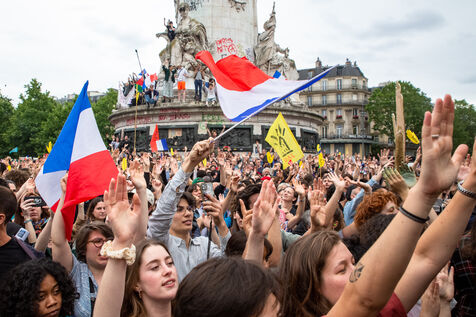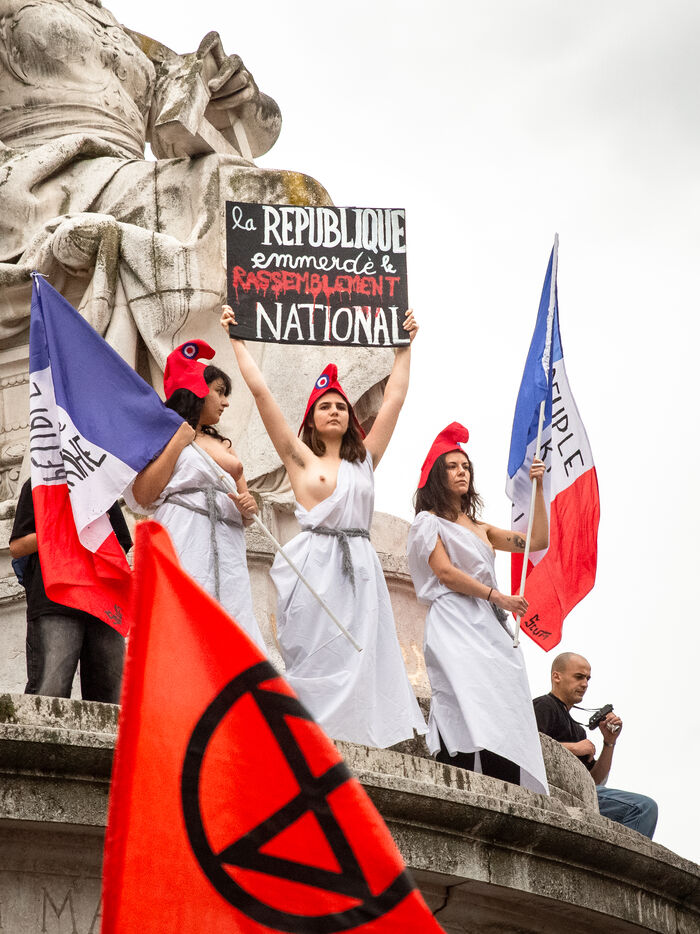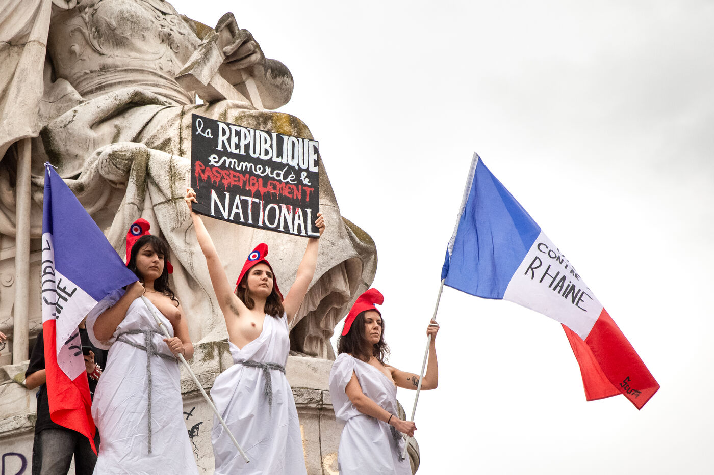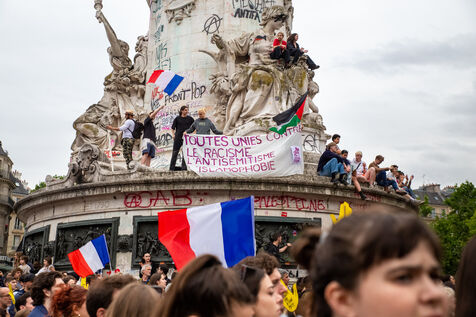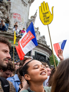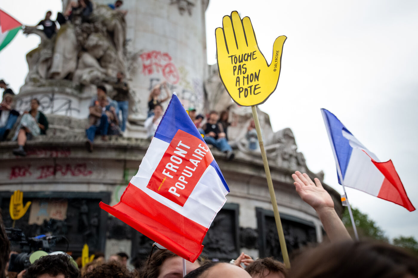 FRANCE, Paris, Place de la République, July 3, 2024. Rassemblement pour un Front democratique contre l'extreme droite organized by hundreds of independent media, associations and trade unions, four days before the second round of early parliamentary elections.