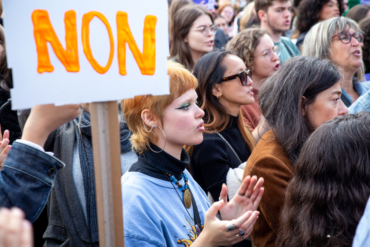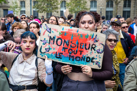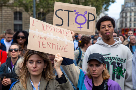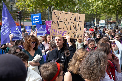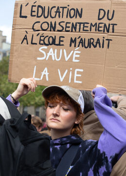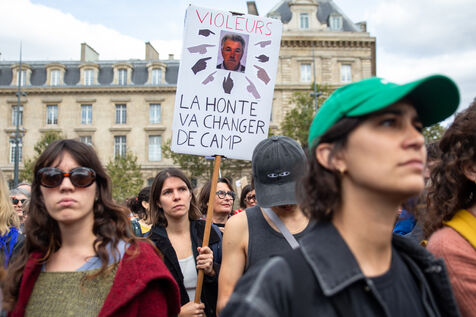 France, Paris, September 14, 2024. Rally in support of Gisele Pelicot, plaintiff in the Mazan rape case, and victims of sexual violence.