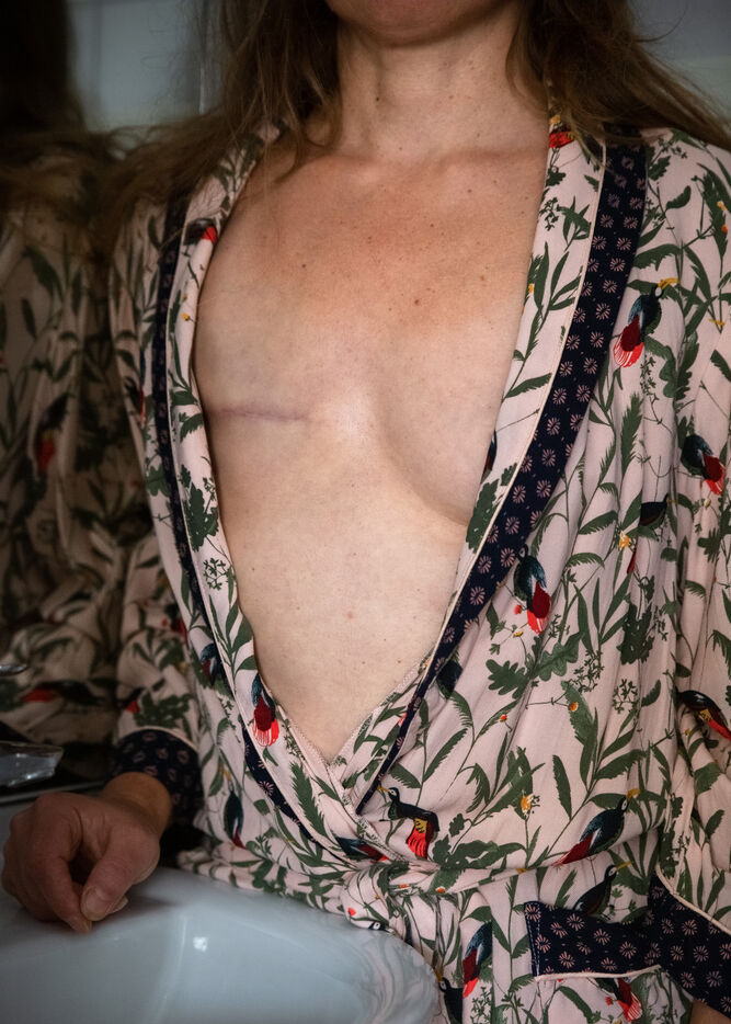 In early February 2024, at the age of 45, I was diagnosed with breast cancer... After the moment of shock, the various stages of denial, anxiety, paranoia and guilt, I finally let go and followed the treatment protocol... For me, it would be a total mastectomy of the right breast with hormone therapy for 5 years. I accept this idea quite easily, as I'm so relieved to be avoiding chemotherapy. After the operation and the convalescence period, with a little more distance between myself and what had just happened to me, I began to ask myself questions, particularly about my relationship with my body, my confidence in it, my health, my strength, my femininity... Like most women who have been through this, I was immediately told about breast reconstruction, which would be fully covered. I later learnt that only 30% of women opt for this type of reconstructive surgery. As I'm still a few months away from this appointment with my body, I'm also wondering... This series is an attempt to put these reflections into images.