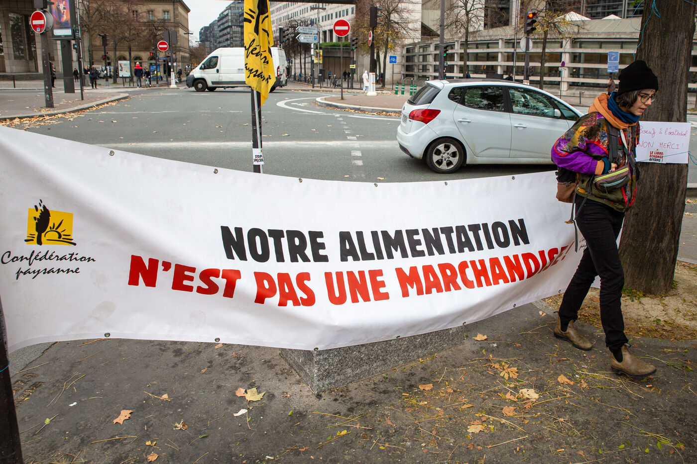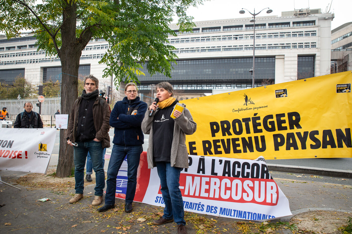 France, Paris, November 13, 2024. Rally against the EU-Mercosur free-trade agreement, in front of the Ministry of Finance on the initiative of Confederation paysanne and Collectif Stop CETA-Mercosur.