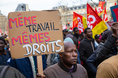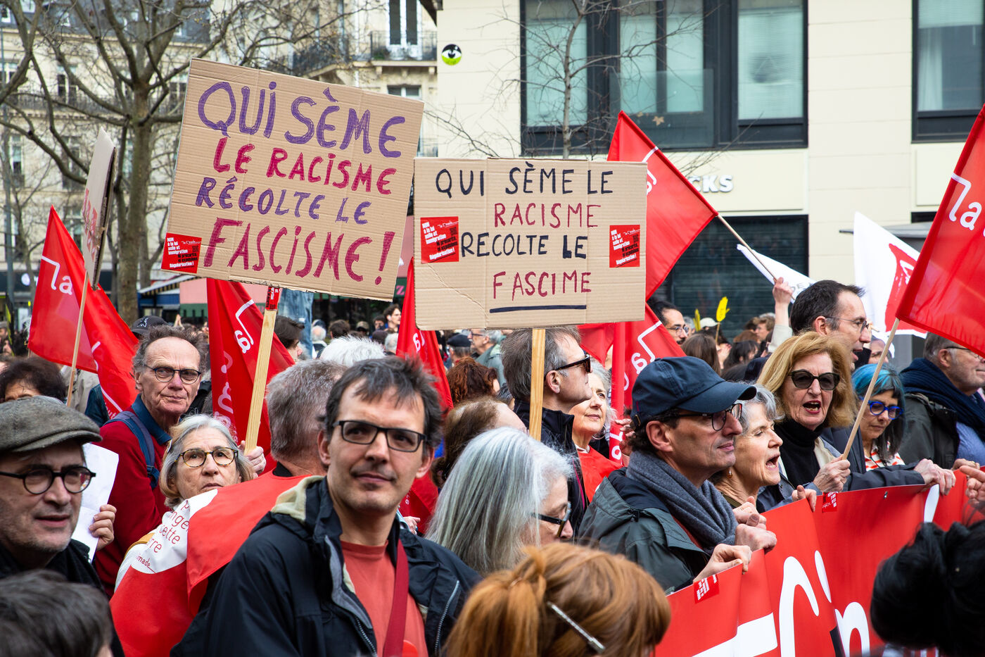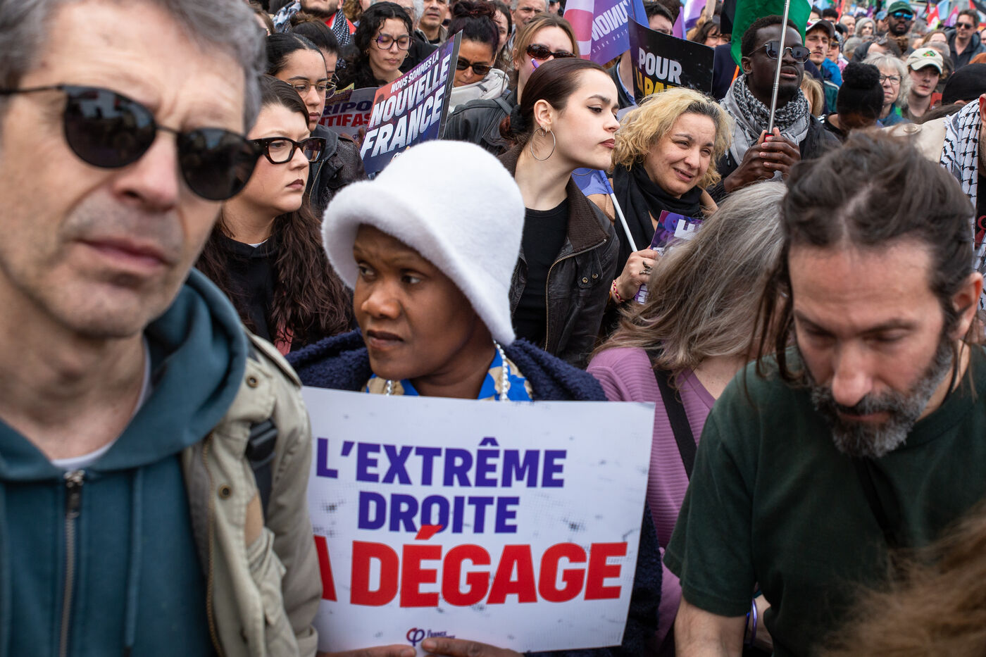 FRANCE, Paris, March 22, 2025. For the International Day Against Racism and Fascism, several associations, unions, collectives and political parties had called for a demonstration to warn of the rise of the extreme right and to promote a project for a humanist, supportive and egalitarian society.