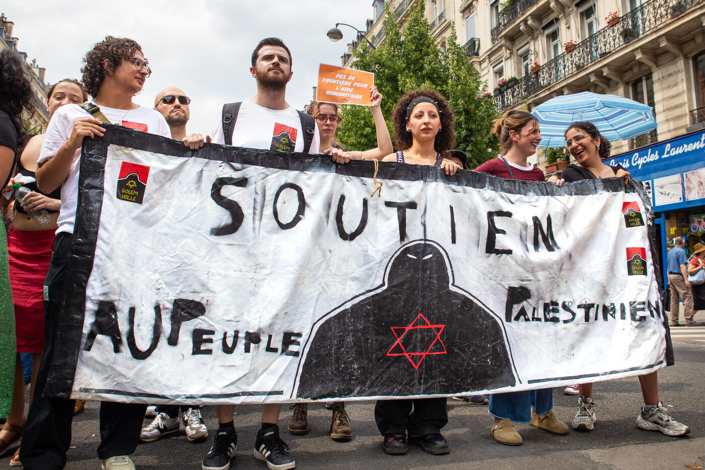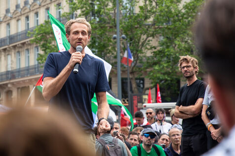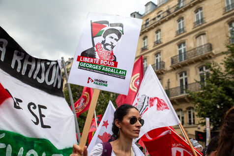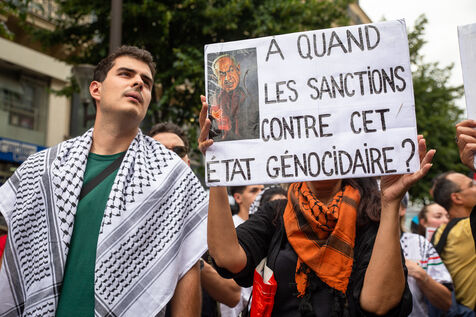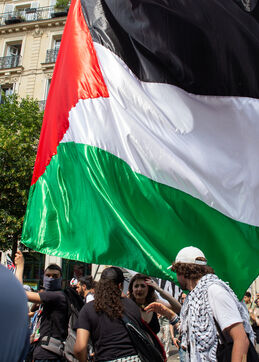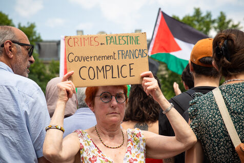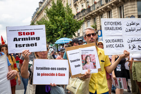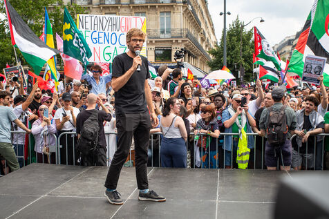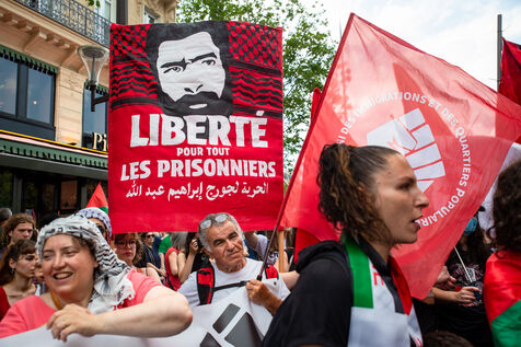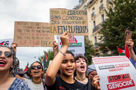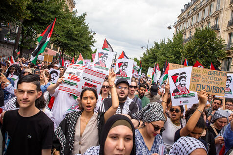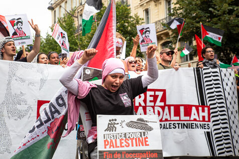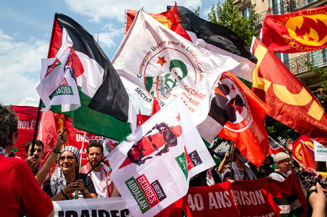 France, Paris, June 14, 2025. Mobilization for Palestine at the call of an inter-union coalition bringing together CFDT, CGT, Unsa, Solidaires, and FSU, the National Collective for a Just and Lasting Peace between Palestinians and Israelis (CNPJDPI), and left-wing parties (LFI, PS, PCF, EELV). Denouncing the abuses committed in Gaza (bombing of civilians, forced displacement, starvation as a weapon of war), and pointing to the genocidal intentions of the Israeli government, the organizers are calling for an immediate ceasefire and unhindered access for humanitarian aid.