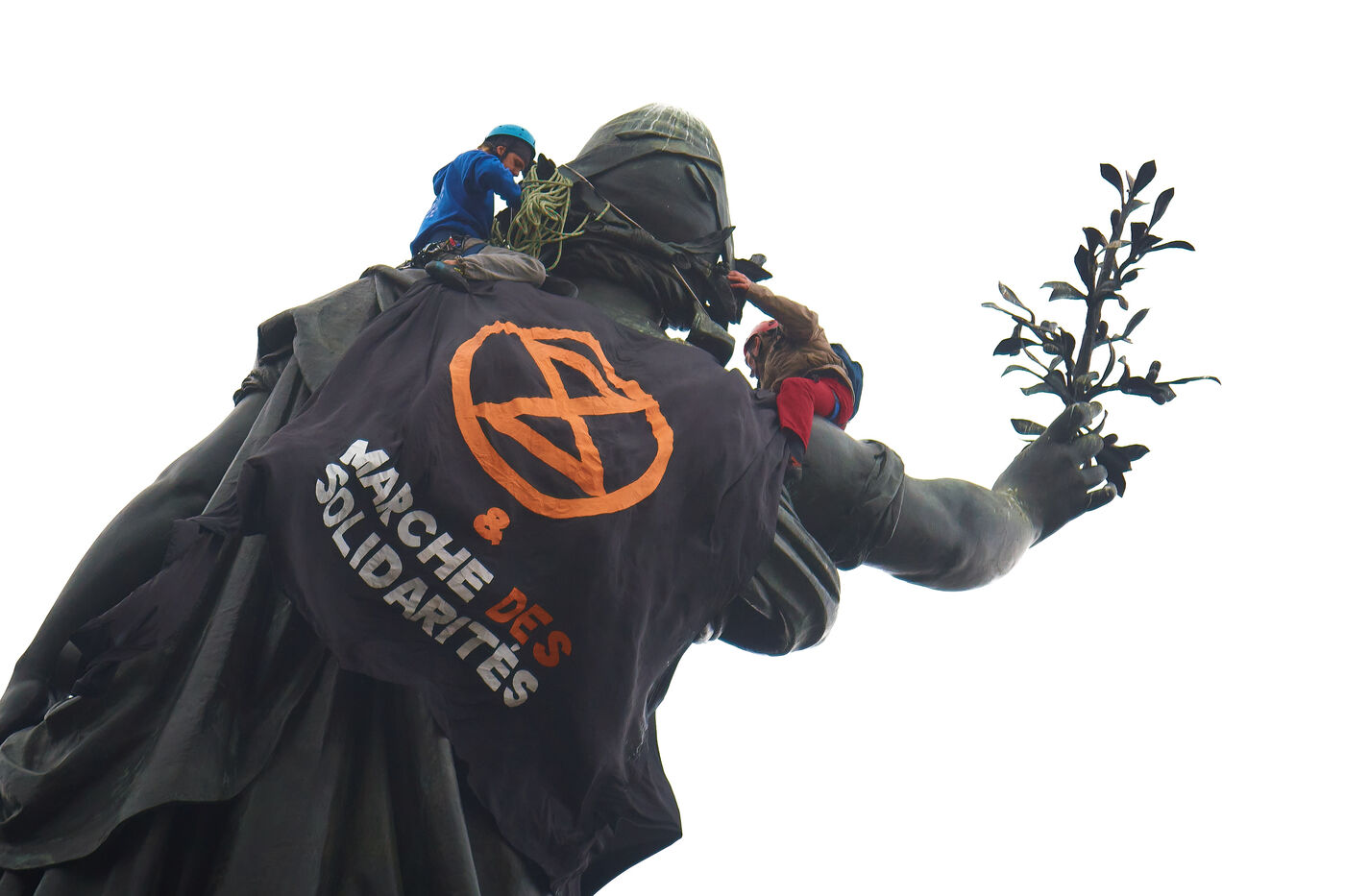 Manifestation parisienne contre la loi immigration de place de la République à Gambetta, sans heurts.
