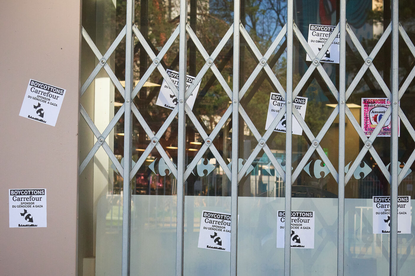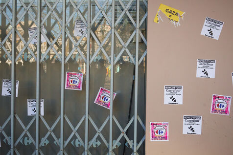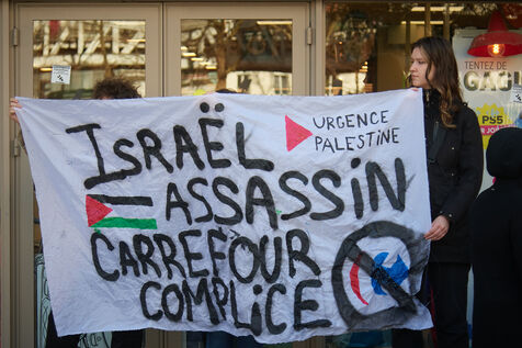 Protest against against Carrefour who support Israel during the war against Hamas in Gaza (Palestine) in Paris, rue Nationale