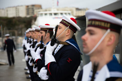 France, Brest, 2023-01-27. Naming ceremony of the Vedette de Fusiliers Marins Bir Hakeim on the naval base of Brest. Photograph by Vincent Feuray / Hans Lucas.