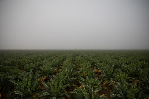 In the middle of a sea of cabbages drowned in a thick mist, a figure is busy, the knife is cutting, the gestures are precise, fast, repeated endlessly. It is the harvest season for Nadine.