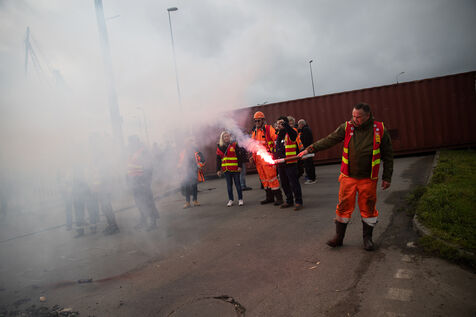 France, Brest, 2023-03-16. Operation dead harbor. Unions keep up the pressure on the government on the day of the pension reform vote with a national action to blockade the ports. Photo by Vincent Feuray / Hans Lucas.