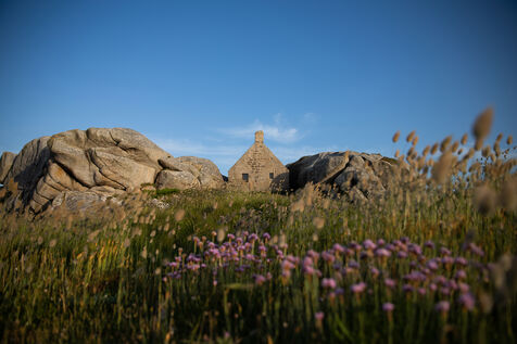 On the seafront, on the route of the GR 34, a village at the end of the world seems frozen in time, Meneham, Menez Ham in Breton. Nestled between the astonishing rocky heaps of the côte des légendes, in the heart of Pagan country, its famous guardhouse built around 1756 makes it one of the symbols of Brittany.