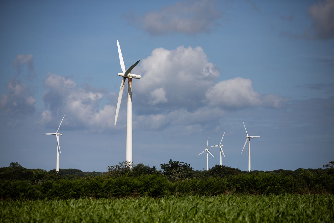 France, Plouvien, 2023-07-06. In order to meet the target of 40% renewable electricity by 2030, the French government has awarded 1156 MegaWatts to the latest tender for onshore wind power. Photograph by Vincent Feuray / Hans Lucas.