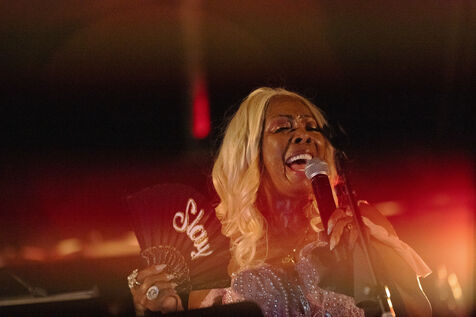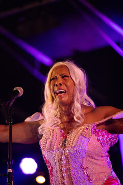 La chanteuse soul Toni Green sur scène a la cinquantième édition du festival du jazz d'andernos-les-bains. Légende de la soul, ex choriste d'Al Green et d'Isaac Hays, elle est une des dernières représentantes de la mythique scène de Memphis. Photographie de Vincent Feuray / Hans Lucas.