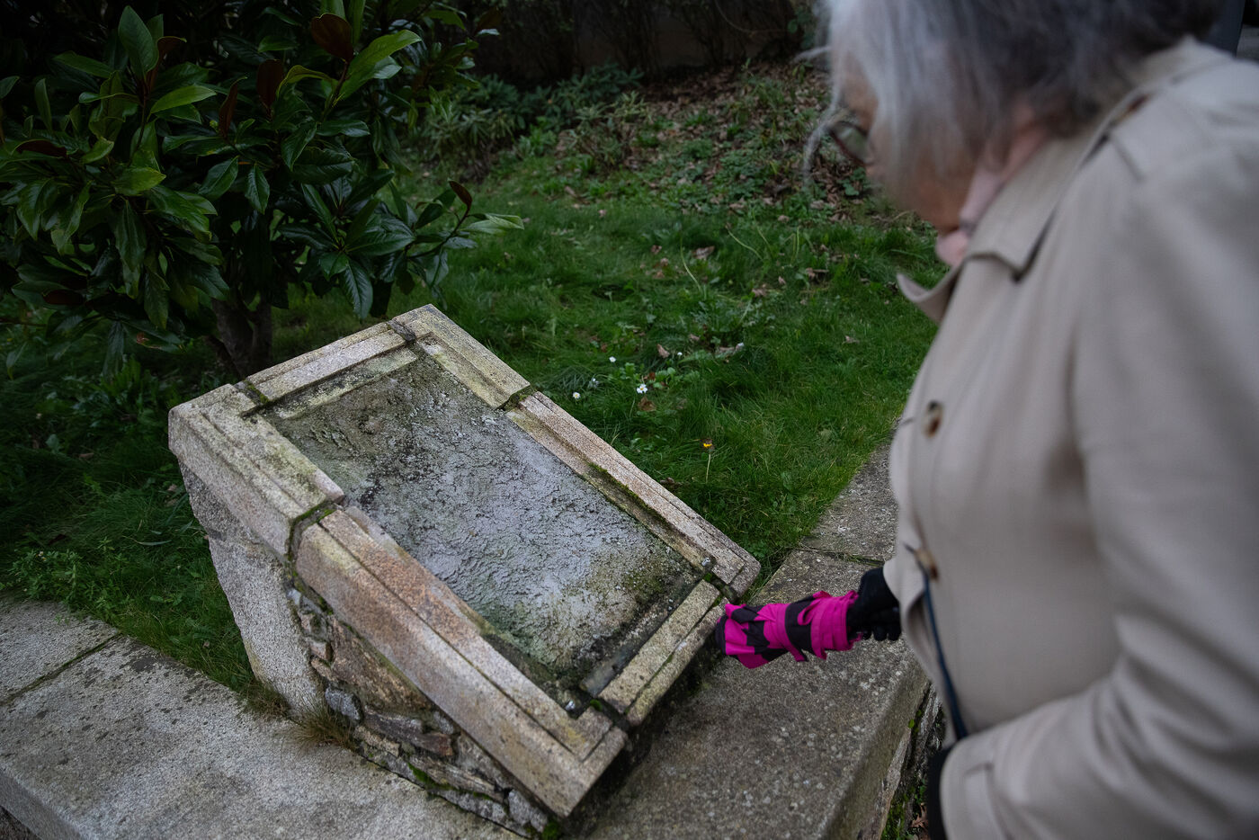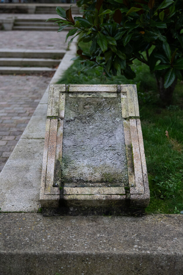 France, Lesneven, 2023-11-21. Une stèle en hommage à Simone Veil a été descellée et brisée à Lesneven, petite commune de 7000 habitants du Finistère Nord. Simple fait divers, conséquences du conflit israelo-palestinien ou nouvel acte antisémite de profanation de l'extrême-droite, une enquête est en cours. Photographie de Vincent Feuray / Hans Lucas.