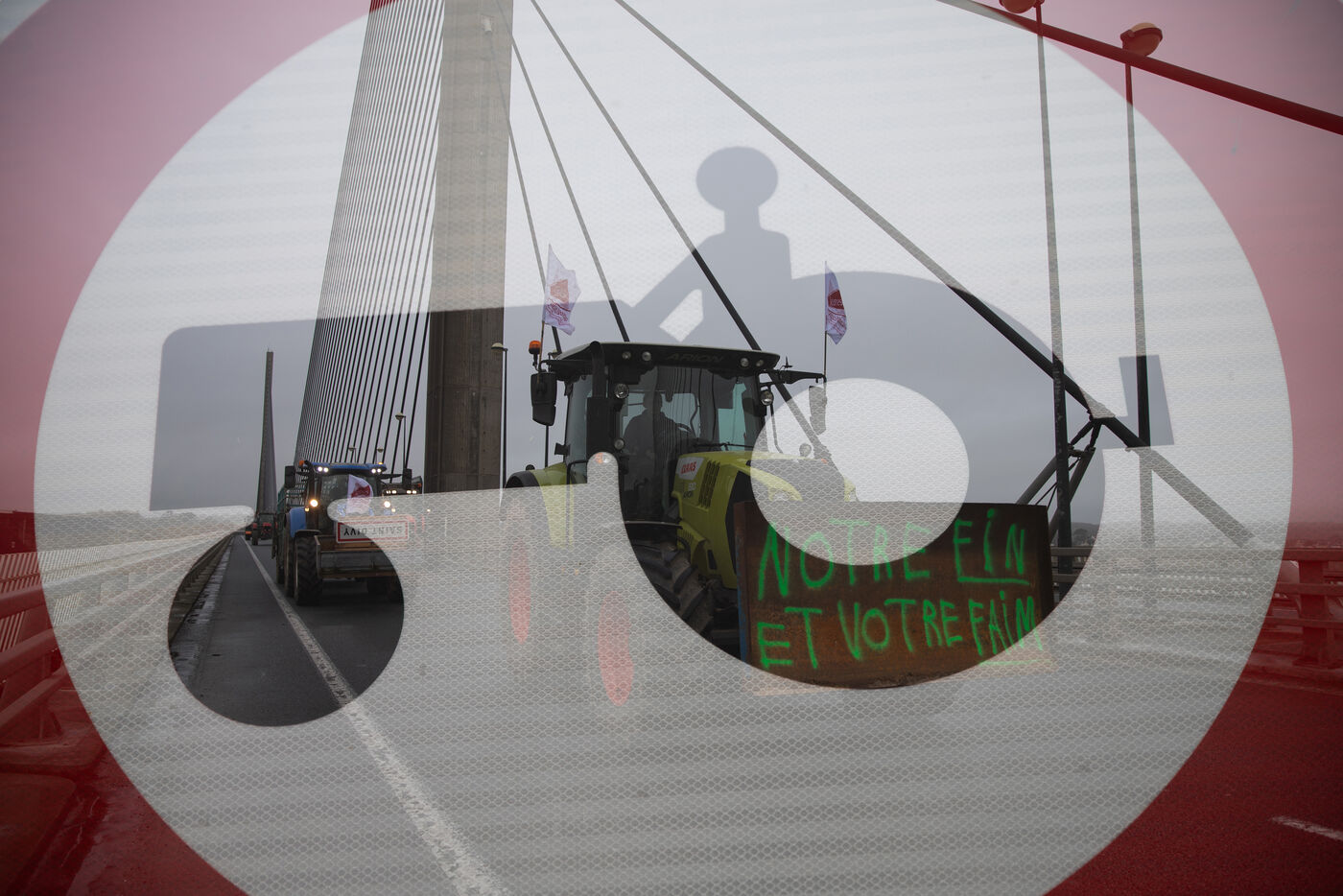 Les agriculteurs en colère bloquent le pont de l'Iroise