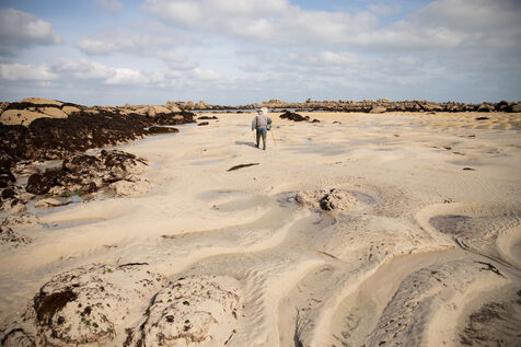 The storm season is over in Kerlouan. The sun is shining high in the skies over the Pagan region, which is once again enjoying the mild, calm days of spring. It's a calm day, with a tidal coefficient of 111, and the foreshore becomes a meeting place for fishing enthusiasts. The idyllic Breton Caribbean landscape is transformed into a maze of sand and granite with well-kept secrets. By chance, I meet 86-year-old Yves and his friend Christophe. They agreed to let me follow them, but the tide doesn't wait, and you can't wait for a photographer. You have to keep up the rhythm, the progress is laborious but the gestures are always sure, methodical, handed down from generation to generation. They know every rock, and the nourishing ocean richly rewards the self-sacrifice of these trackers of the sea. Soon the Grail is found, abalone in hidden crevices or a lobster flushed out of its hole.