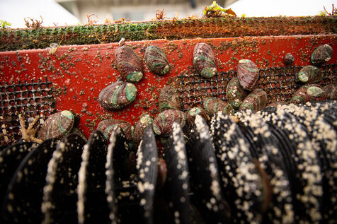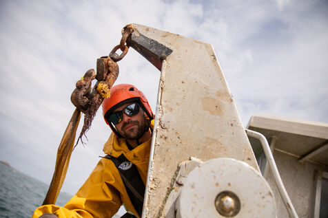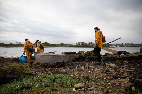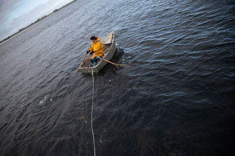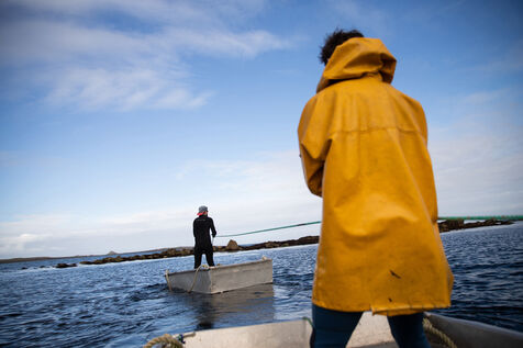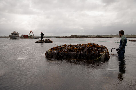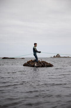 Sunday, May 25, 2025, 07:30 in the morning. The appointment has been made at Kerazan harbor in Lilia to accompany Guillaume, Alexandre and Titouan, three seamen from France Haliotis, the only company in Europe to raise wild abalone. The boarding sets the tone. We row to the boat moored to a dead body aboard a frail skiff. The aim of the day is to collect seaweed to feed the wild abalone growing in traps off the coast. Leaving the sheltered area at the mouth of the Aber Wrac'h, it's a 30 minute sail to the seaweed collection site. The ship and sailors face a 2.50 meter swell with impassivity, which is quite normal for these men who are used to the fury of the ocean. We finally come in sight of a rocky islet just above the surface of the water, the tide is almost out, and work can begin after a short break for lunch. A lifeline is stretched between our boat and the collection area, in the middle of the vast seaweed fields of North Finistère. The work looks like something from another era. Immersed in waist-deep water, the sailors slice through the seaweed with billhooks, the gestures precise and endlessly repeated, five tenders each loaded with 700 kilos of the precious resource before the tide rises too much. Once the ship has been loaded, it heads for the concession where the abalone grow. Unlike farming areas on land, here the production site has been transformed into a veritable refuge for biodiversity. The second phase of the day begins. Four by four, the trays containing the abalone are lifted from the seabed by crane to be filled with the collected seaweed that will feed the precious mollusks for a month. Here, too, the movements are precise, the operation is dangerous, and concentration is the order of the day. 72 trays are thus filled before the day comes to an end, heralding the return to port. It will be three to four years before the wild abalone can be sold on the country's finest tables.