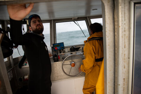 Dimanche 25 mai 2025, il est 07 heures 30 du matin. Le rendez-vous a été pris au port de Kerazan à Lilia pour accompagner sur une marée Guillaume, Alexandre et Titouan, trois marins de France Haliotis, seule entreprise en Europe à élever des ormeaux sauvages. L'embarquement donne le ton. Nous rejoignons à la rame le bateau amarré à un corps mort à bord d'un frêle esquif. L'objectif de la journée, collecter des algues afin de nourrir les ormeaux sauvages qui grandissent dans des casiers au large de la côte. Nous quittons la zone abritée à l'embouchure de l'Aber Wrac'h, il faudra 30 minutes de navigation pour rejoindre le lieu de ramassage des algues. Le navire et les marins affrontent impassiblement une houle de 2 mètres 50, des conditions habituelles pour ces hommes rompus à la fureur de l'océan. Nous arrivons enfin en vue d'un îlot rocheux affleurant à peine de la surface de l'eau, la marée est presque basse, le travail peut commencer après une courte pause pour manger. Une ligne de vie est tendue entre notre embarcation et la zone de collecte, au milieu des vastes champs d'algues du Finistère Nord. La tache semble tout droit sortie d'une autre époque. Plongés dans l'eau jusqu'à la taille les marins tranchent les algues à l'aide de serpes, les gestes sont précis, répétés sans cesse, il faut remplir cinq annexes avec chacune 700 kilos de la précieuse ressource avant que la marée ne soit trop haute. Une fois la cargaison chargée, le navire met le cap sur la concession où les ormeaux grandissent. A la différence des zones d'élevage à terre, ici le lieu de production s'est transformé en un véritable refuge pour la biodiversité. La deuxième phase de la journée peut commencer. Quatre par quatre, les casiers contenant les ormeaux sont remontés du fond marin à l'aide d'une grue afin d'être remplis par les algues collectées qui nourriront les précieux mollusques pendant un mois. La aussi les gestes sont précis, l'opération est dangereuse, la concentration est de mise. 72 casiers sont ainsi alimentés avant que la journée ne se termine et annonce le retour au port. Il faudra entre trois et quatre années avant que les ormeaux sauvages puissent être mis à la vente et rejoindre les plus grandes tables du pays.