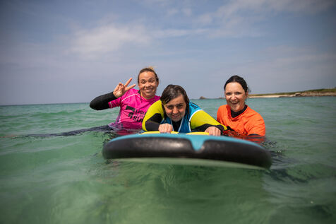 Nous sommes le lundi 09 juin 2025, deuxième journée Handi Surf pour le surfing des club des Abers à Plouguerneau et son président Gwen Renambot. L'évènement rassemble plus de 25 personnes en situation de handicap, les coachs du club, des éducateurs et une quarantaine de bénévoles en partenariat avec la ligue de surf de Bretagne. Alors que le surf a atteint le premier cercle des disciplines sportives aux derniers jeux Olympiques d'été de 2024, se révélant au monde, ce sport en harmonie avec les éléments permet ici depuis longtemps au plus grand nombre de profiter de sensations uniques. Le rendez-vous est pris sur le spot de la Grève Blanche, la petite troupe est au complet. Chacun se prépare, enfile une combinaison avant de se diriger vers la plage. L'ambiance et la marée commencent à monter, l'atmosphère est studieuse, l'échauffement obligatoire pour préparer les corps avant une plongée dans le grand bain. Les premières sensations sont fortes, l'accompagnement essentiel pour faire passer les premières appréhensions. Ici que nous soyons en situation de handicap moteur, mental, sensoriel ou bien valides, nous sommes tous égaux face à l'océan, ce terrible océan qui calme la houle colérique des émotions et des douleurs. Le cap est vite franchi, la magie opère et c'est l'osmose avec les éléments. La quête de la vague devient une obsession, la recherche de la technique indispensable sous les conseils avisés des coachs et rapidement ce sont les premières prises de vagues, la joie d'un exploit sportif accompli, les professionnels de l'équipe de France de surf n'ont qu'à bien se tenir, la relève est assurée.