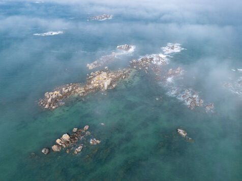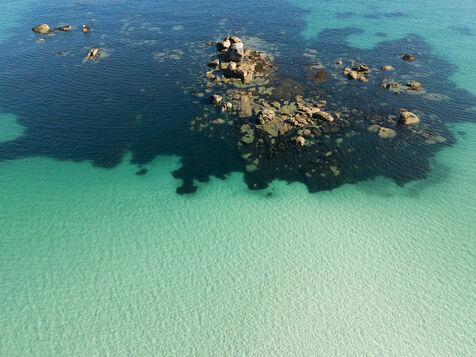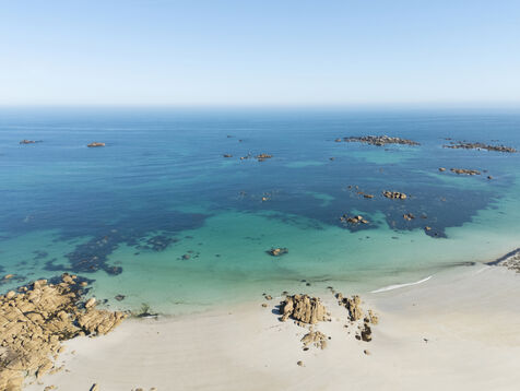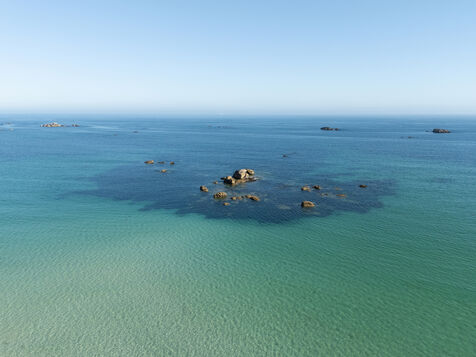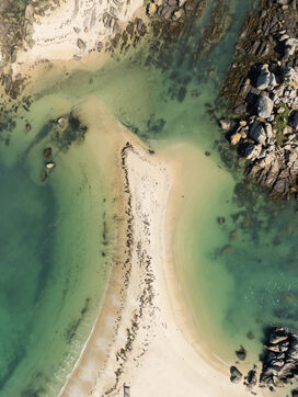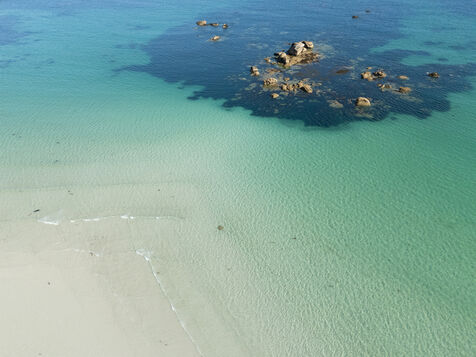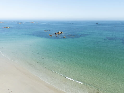 Fine sand, deserted beaches dotted with rocks whose shapes stimulate the imagination, turquoise water that changes with the light. Kerlouan's picture-postcard scenery invites you to contemplate and get away from it all. Flying over the Breton Caribbean at Kerlouan.
