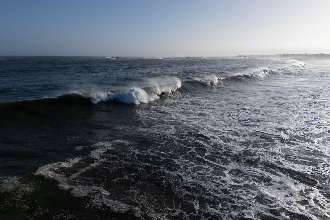 Mardi 26 aout 2025, les côtes françaises sont touchées par la houle générée par le cyclone Erin. Le Finistère est comme à son habitude en première ligne, offrant un spectacle toujours impressionnant et un terrain de jeu inhabituel pour la saison pour les surfers les plus aguerris.