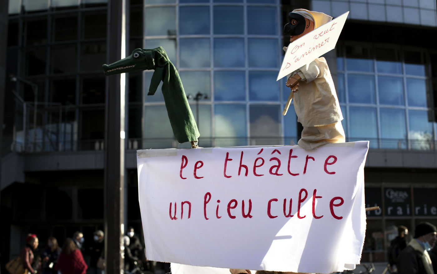 After the government's decision not to reopen cultural venues because of the Covid-19 epidemic, thousands of demonstrators expressed their anger in the Place de la Basille in Paris on 15 December 2020.