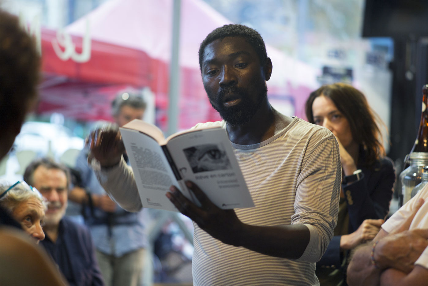 The 2021-2022 season of the Théâtre des Quartiers d'Ivry started at the end of September 2021 with a weekend of festivities. In the bar Le Marat, in Ivry-sur-Seine, the poet and director Dieudonné Niangouna read extracts of poems from his collection entitled "Rêve en carton", to music by Pierre-Jean Rigal, known as Pidj.