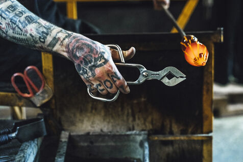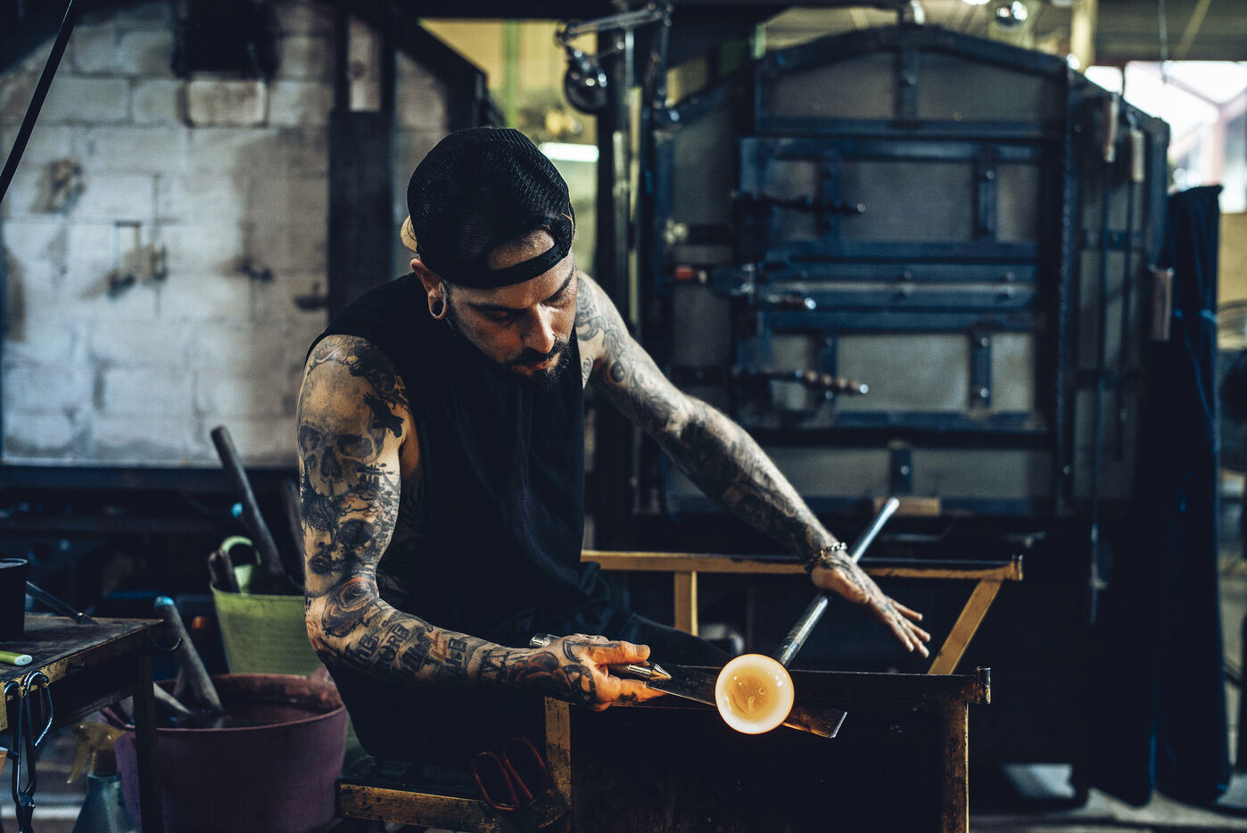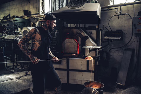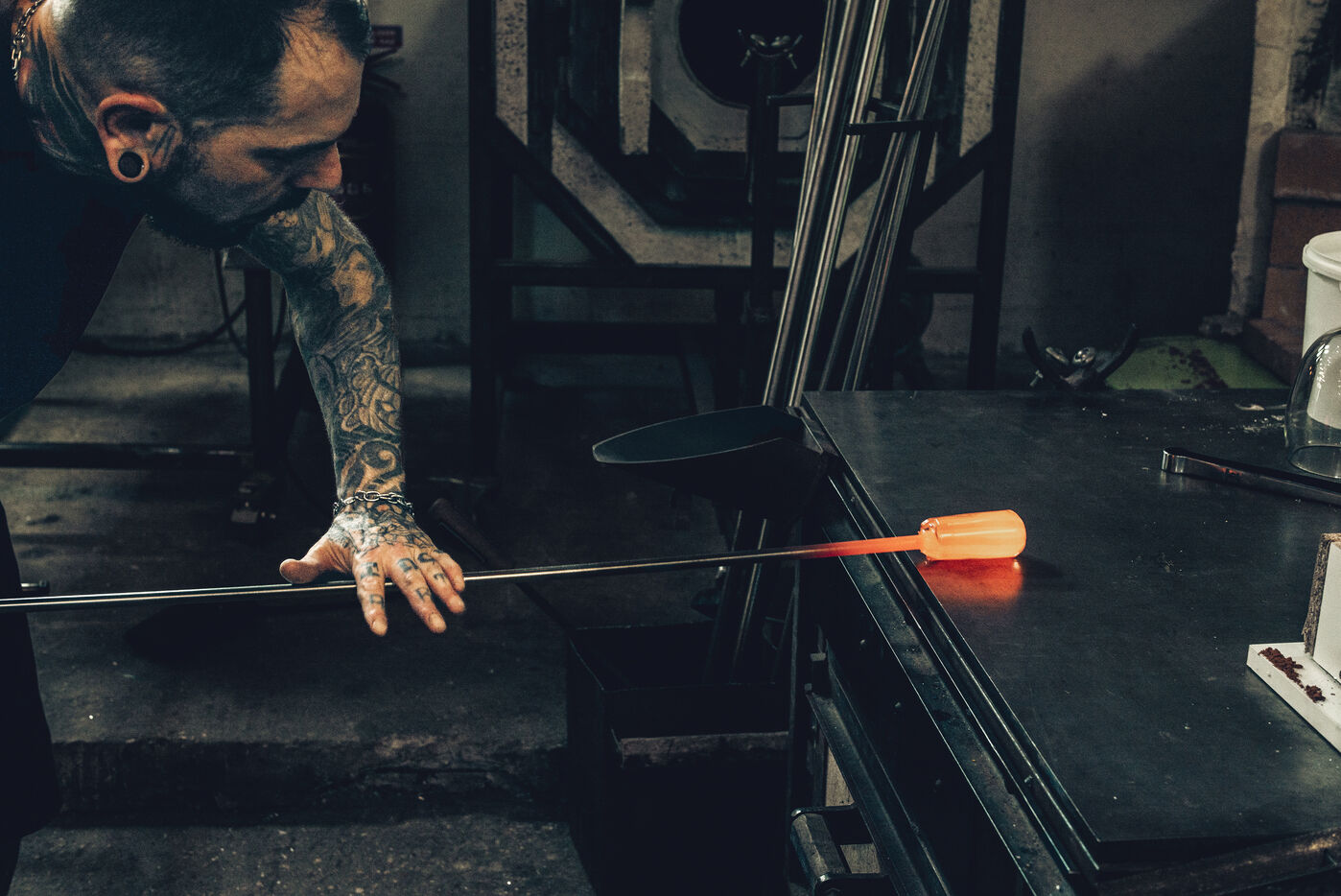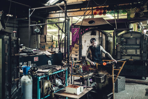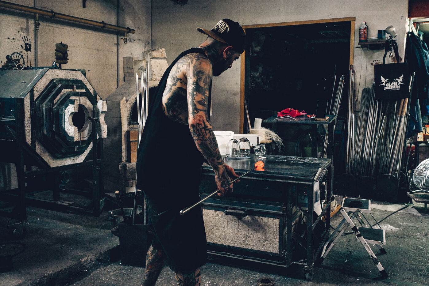 Dans son atelier situé à Arcueil, en région parisienne, Thomas Segaud, artisan verrier depuis plus de vingt ans, façonne des pièces de verre en fusion, à 1 200 degrés. En 2013, il crée sa propre marque : Glass Sabbath.