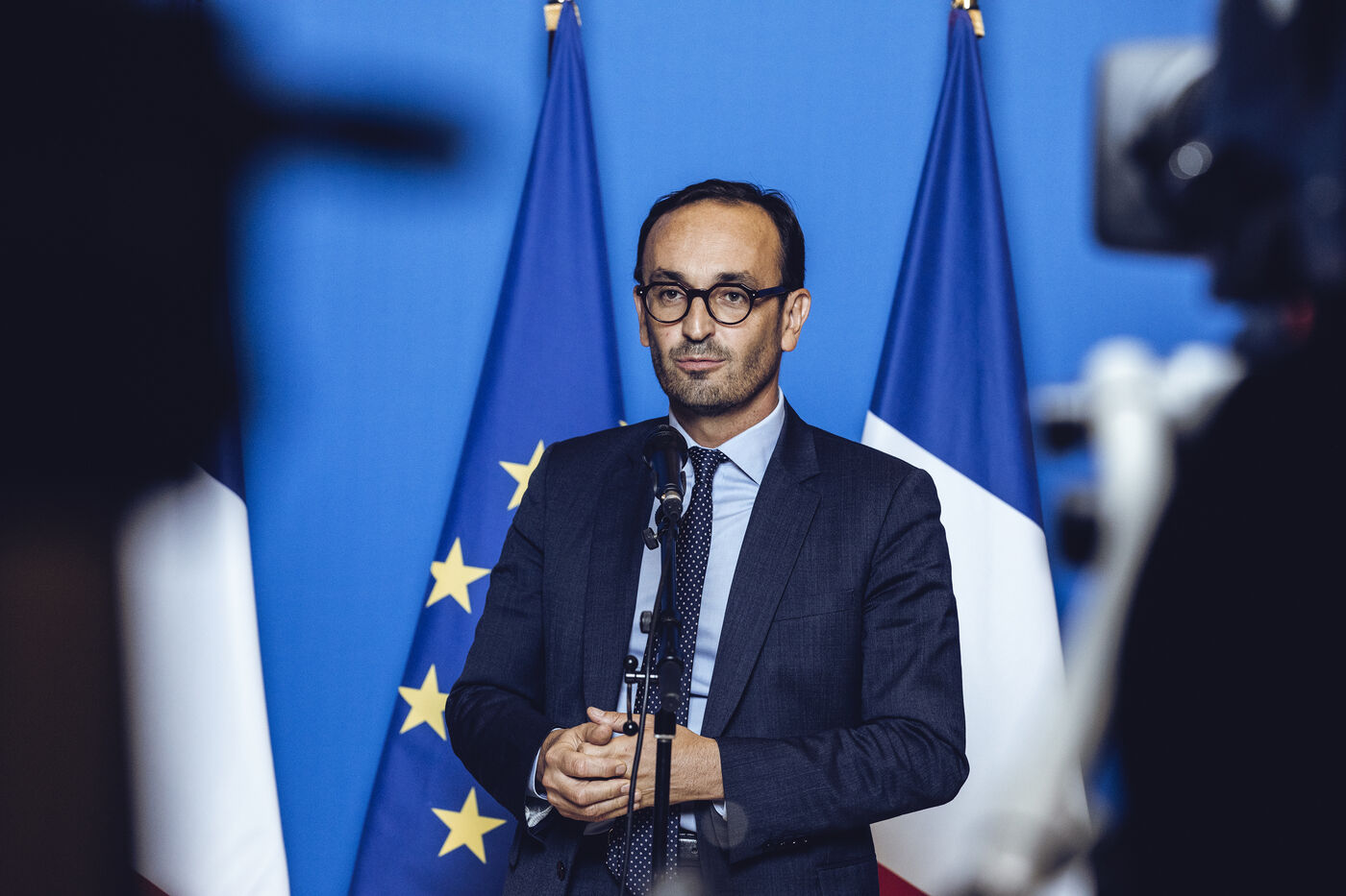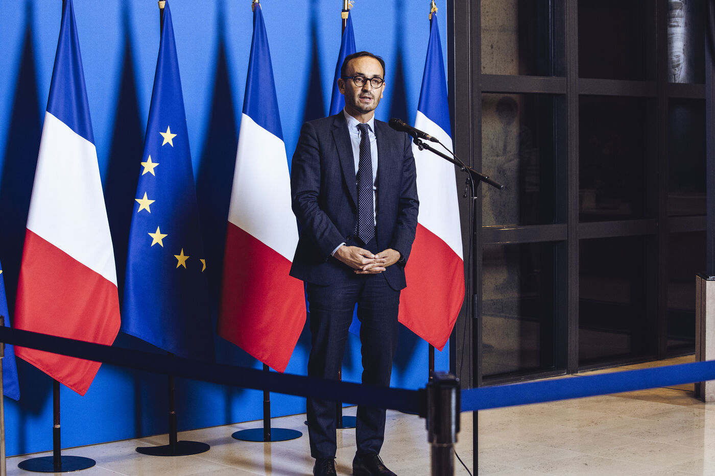 Thomas Cazenave, Minister Delegate with responsibility for Public Accounts, answered journalists' questions after the "Dialogues de Bercy" meeting with members of parliament from the majority and the opposition on the draft budget for 2024.