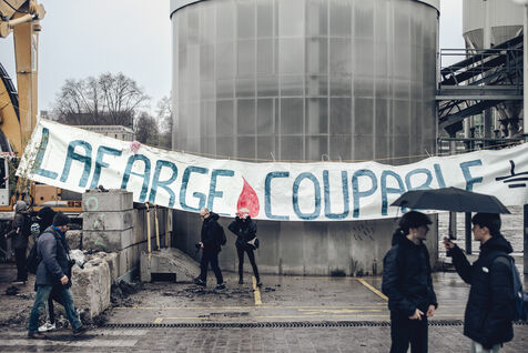 The environmental collective Les Soulèvements de la Terre has organised days of action in several French towns against the production sites of cement manufacturer Lafarge-Holcim, accused of artificialising land and polluting the environment through its cement works and concrete plants. Paris, 11 December 2023.