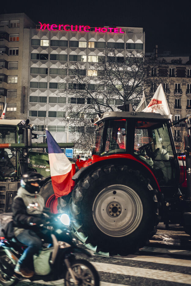 Farmers from Coordination rurale gathered outside the Parc des Expositions at Porte de Versailles on Friday, February 23, 2024, to demonstrate their anger at the government's agricultural policy.