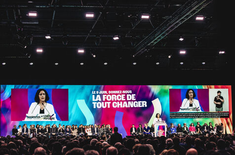France insoumise launched its campaign for the European elections at a meeting in Villepinte, Seine-Saint-Denis, on Saturday 16 March 2024. List leader Manon Aubry made official the symbolic presence of Jean-Luc Mélenchon in the campaign.