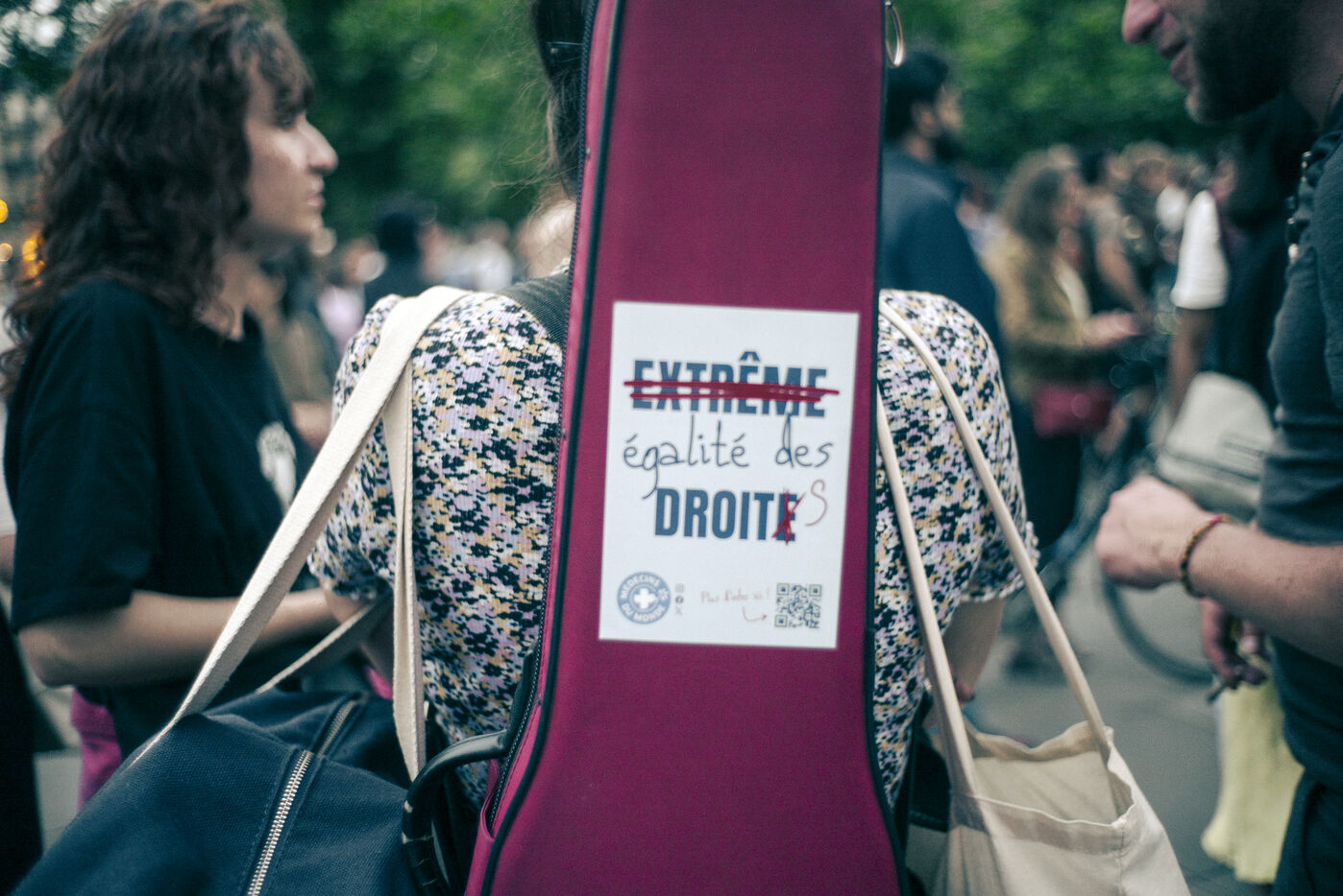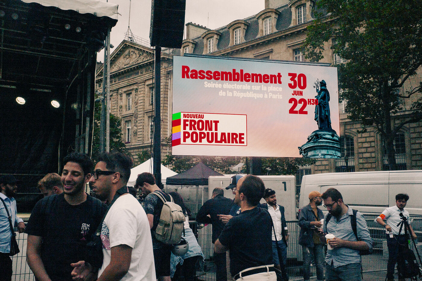 On Sunday 30 June 2024, hundreds of people gathered in Place de la République in support of the New Popular Front (NFP), the left-wing coalition that came second in the first round of the early parliamentary elections.