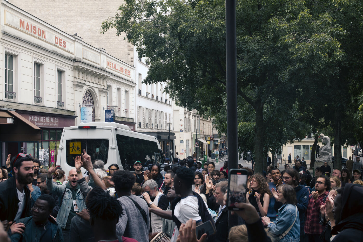 Ce mercredi 3 juillet 2024, le tribunal administratif, à la demande de la Mairie de Paris, propriétaire de la Maison des métallos, a ordonné l'expulsion de 230 jeunes migrants vers un gymnase de la capitale, Ils occupaient le centre culturel, situé dans le XIe arrondissement de Paris, depuis le mois d'avril dernier. Le collectif des Jeunes du parc de Belleville a demandé des garanties pour un hébergement à long terme des mineurs isolés à la rue. Des femmes avec des enfants en bas âge qui dorment dans la rue ont bloqué le dernier bus censé emmener les mineurs, et demandent aussi à être prises en charge.