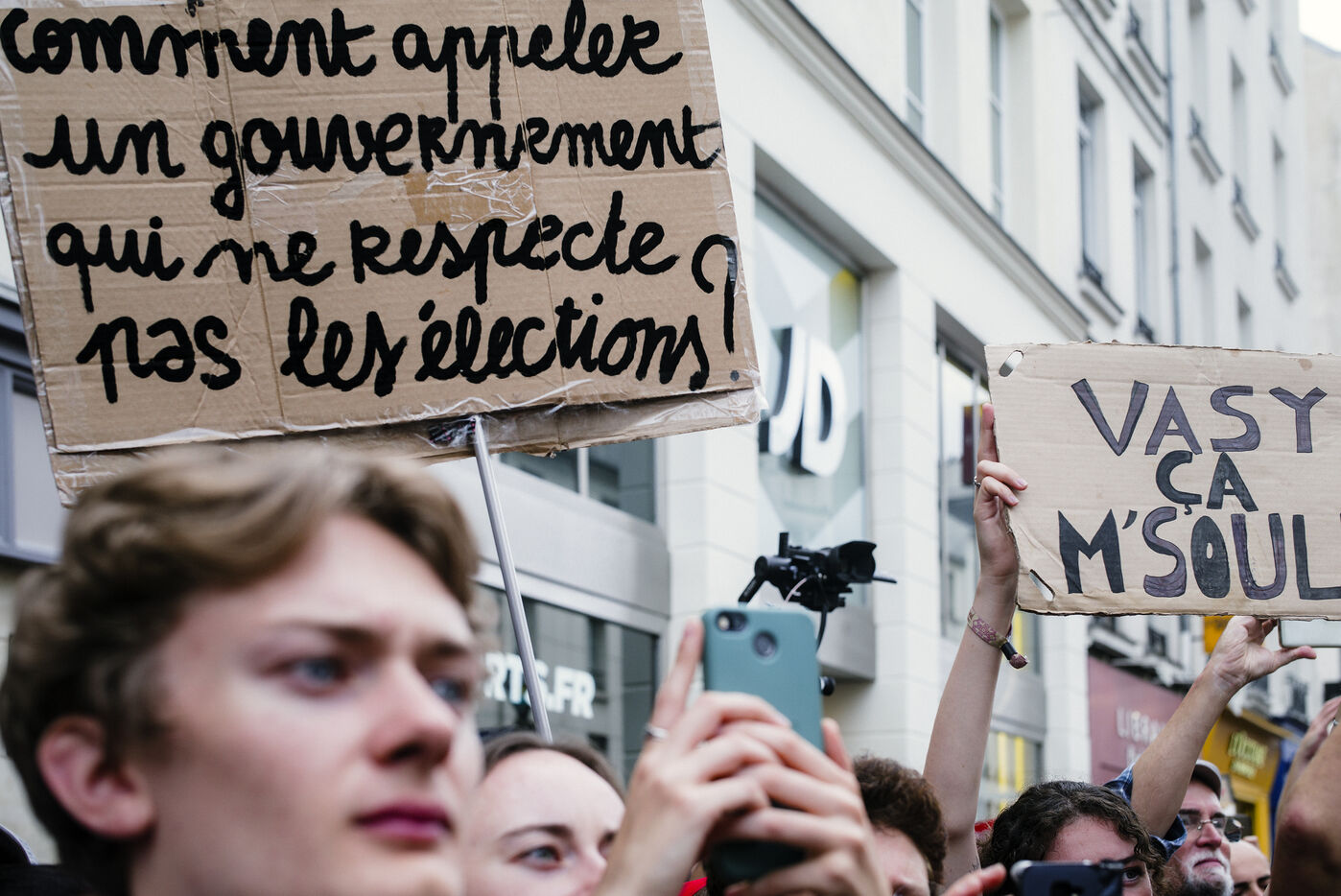 France insoumise and a number of youth organisations have called for demonstrations in over 130 towns and cities across France in response to the President's power grab after he appointed Michel Barnier as Prime Minister. Paris, 7 September 2024.
