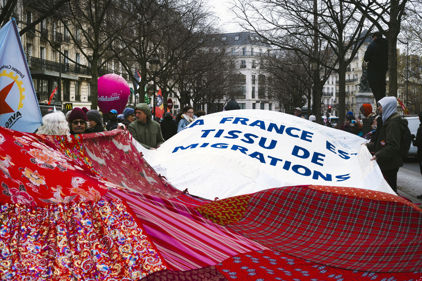 To mark International Migrants‘ Day, around fifty demonstrations are planned between 14 and 18 December across France, called by the Marche des Solidarités and undocumented migrants’ groups. Paris, 14 December 2024.