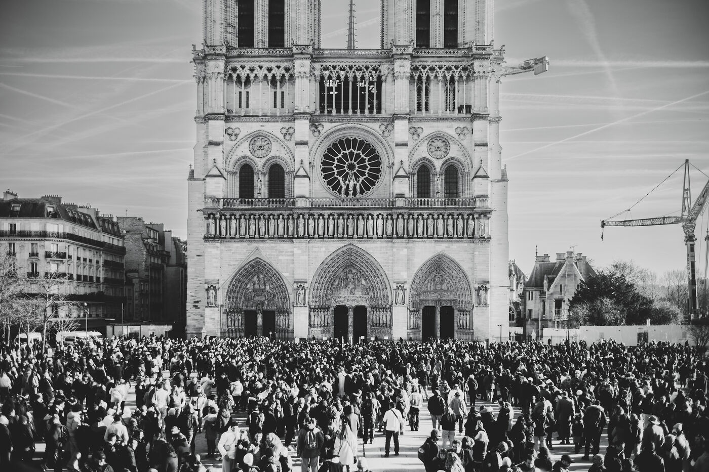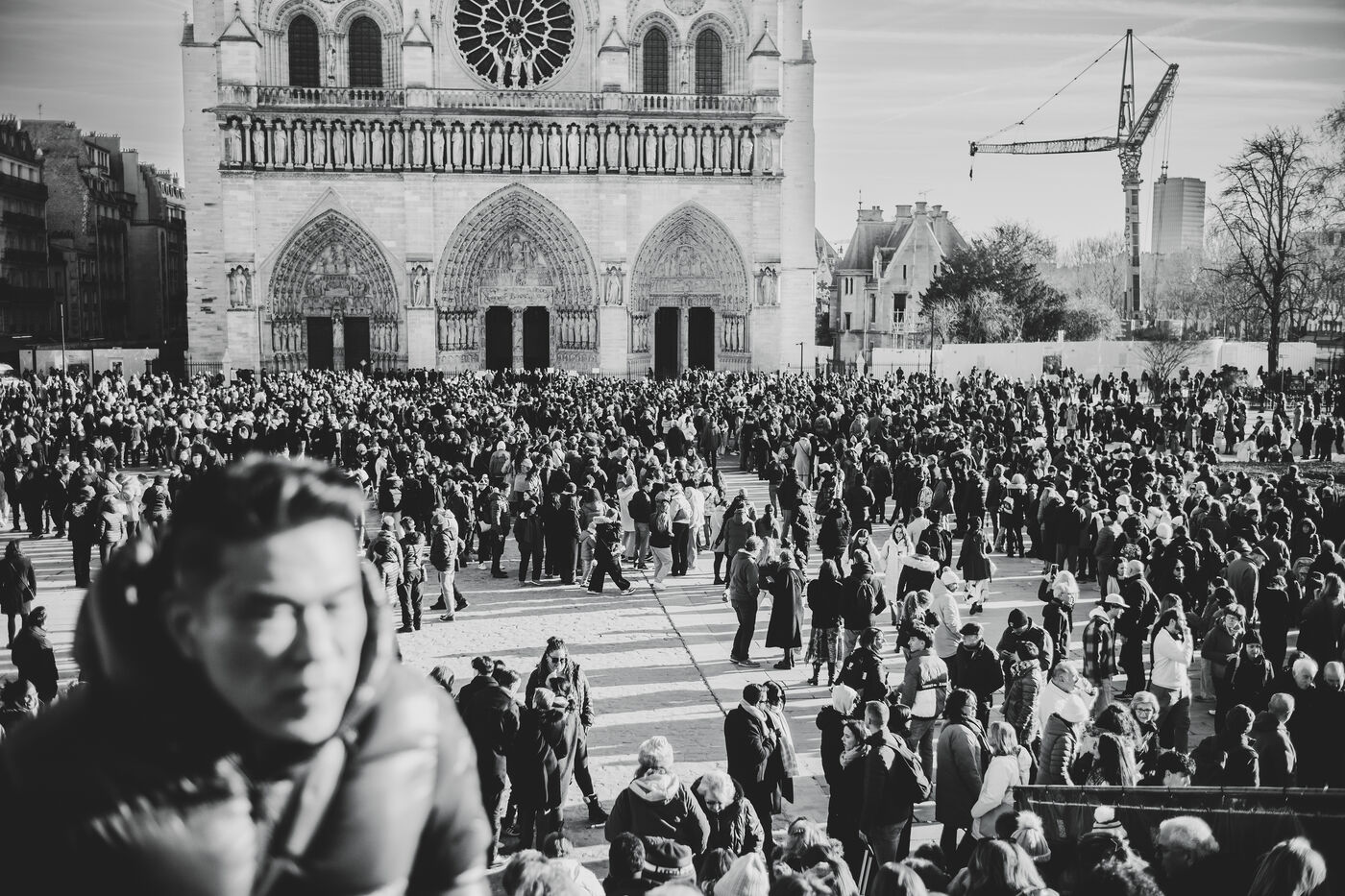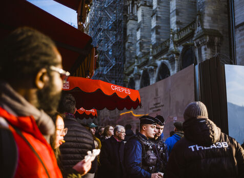 In front of the cathedral, which has been open to the public since 7 December after more than five years of renovation work, visitors flock to see the restored interior.