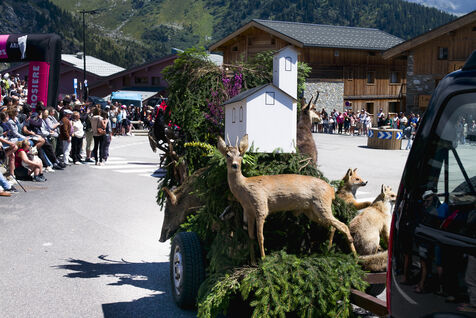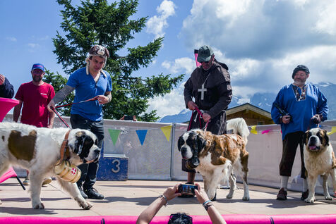 Défilé de chars, folklore savoyard, costumes traditionnels et concours d'élégance de chiens saint-bernard à La Rosière, en Savoie, les 2 et 3 août 2025.