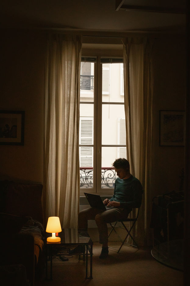 Un étudiant en alternance en consulting travaille depuis son appartement à cause des mesures liées à la COVID 19.