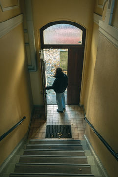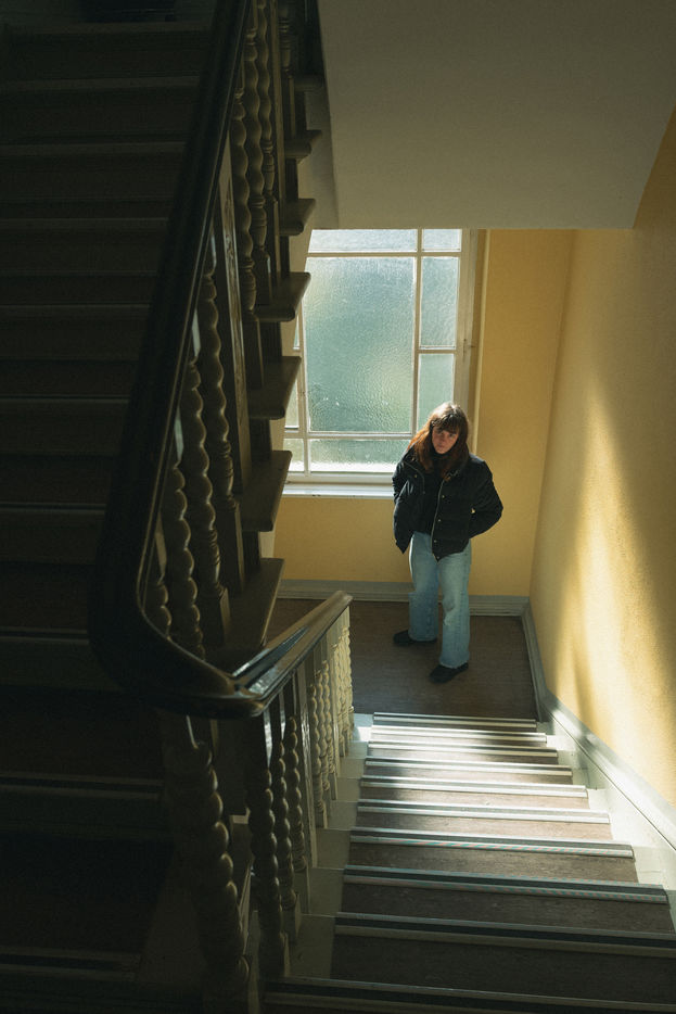 Young woman in a stairwell in Berlin