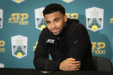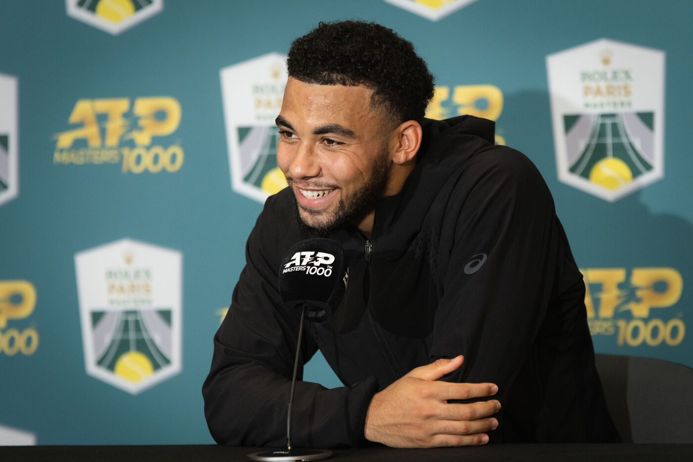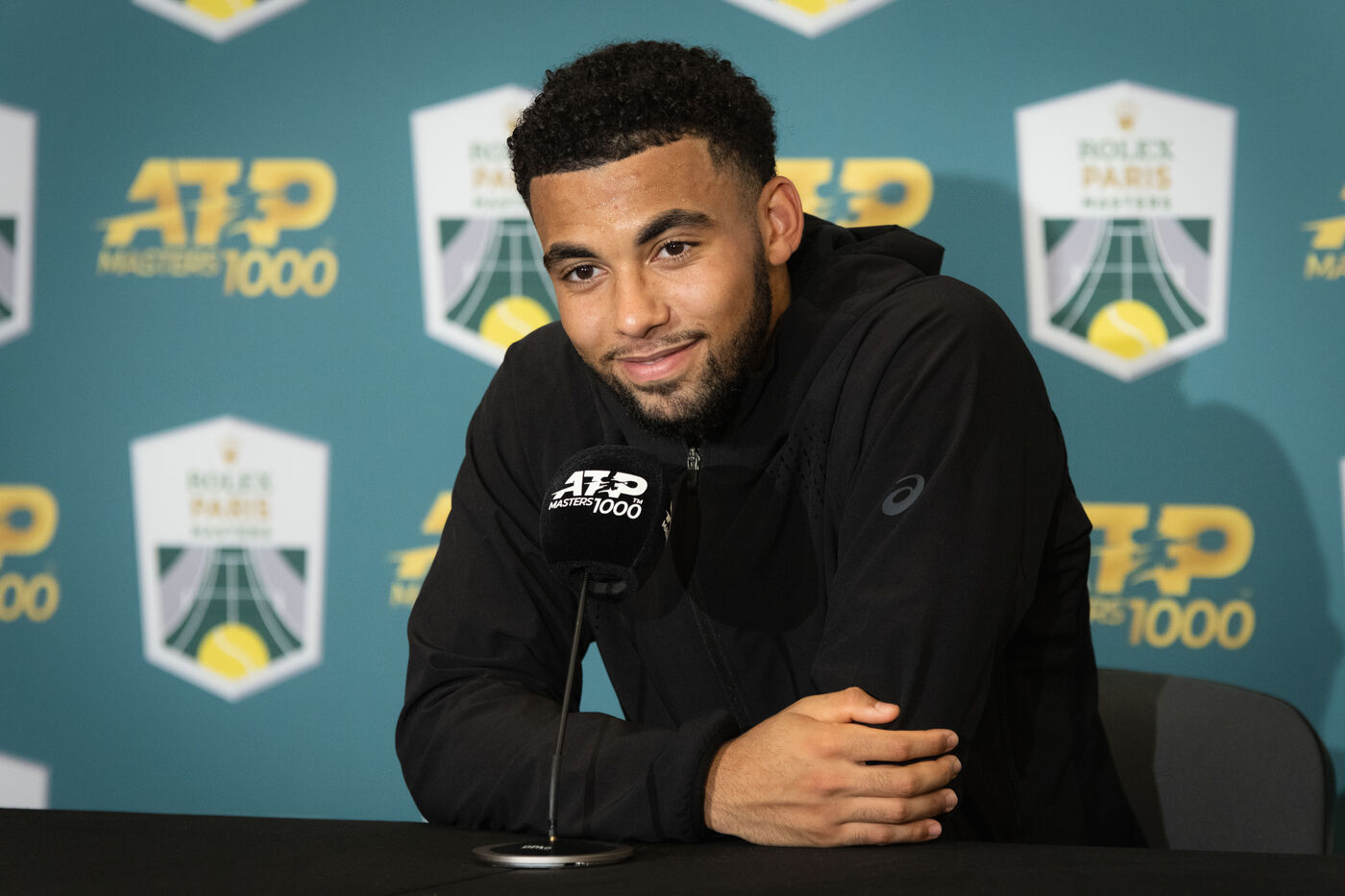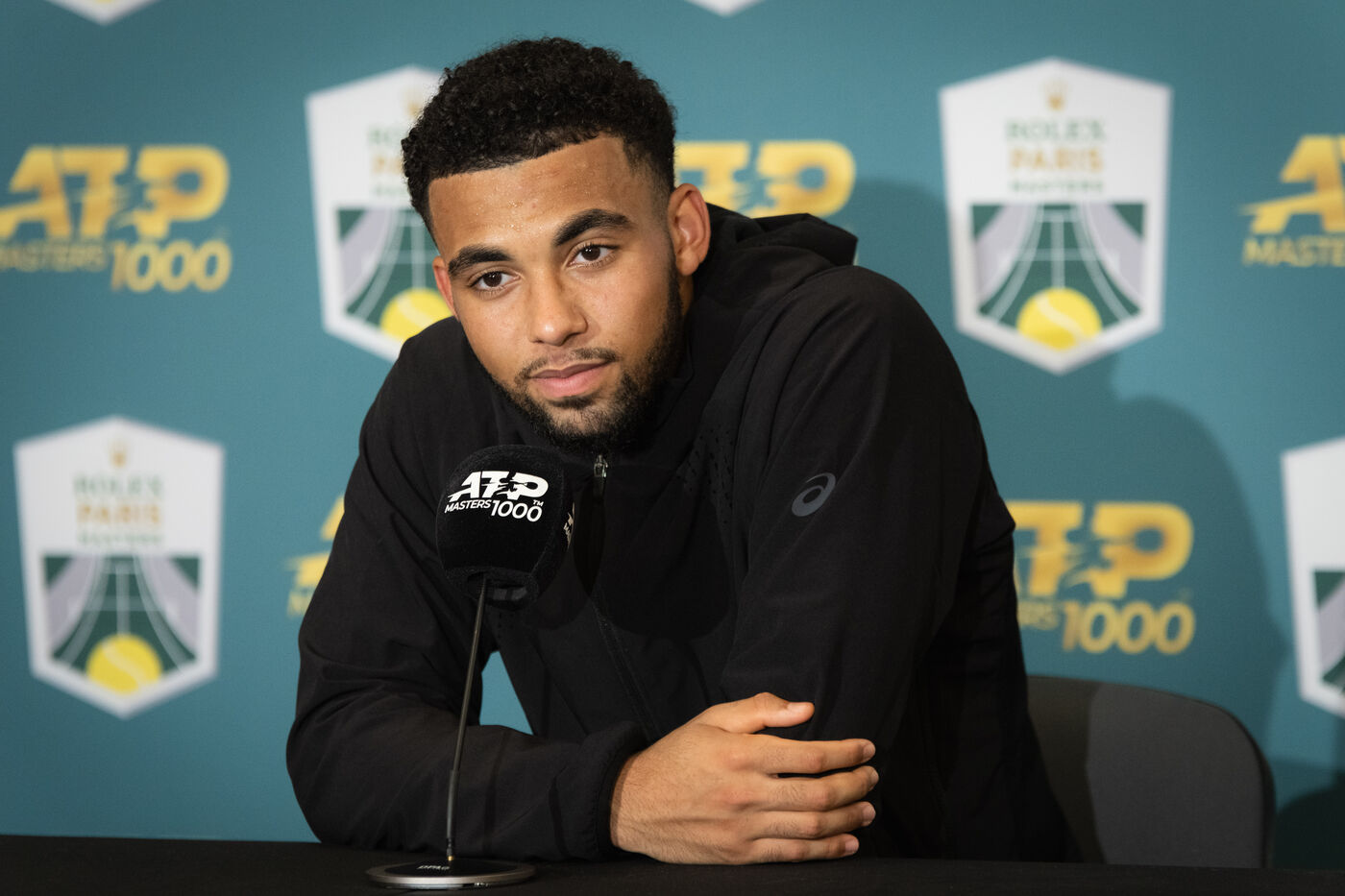 Arthur Fils en conférence de presse le mardi 31 octobre à l'Accor Arena après sa défaite contre Daniel Altmaier au premier tour du Rolex Paris Masters.
