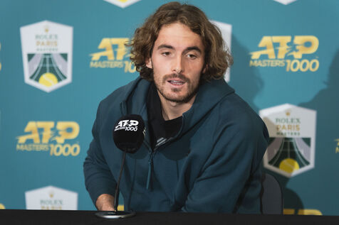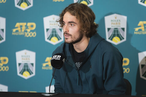 Stefanos Tsitsipas at a press conference on Friday November 03 after qualifying for the semi-finals at the expense of Karen Khachanov at the Rolex Paris Masters.